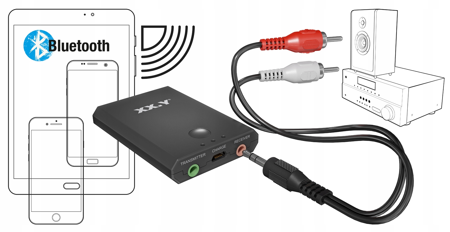- Umożliwia bezprzewodowy przesył dźwięku ze smartfona/tabletu/laptopa z funkcją Bluetooth do wszystkich urządzeń audio wyposażonych w wejście mini jack 3.5mm lub RCA nie obsługujących technologii Bluetooth.