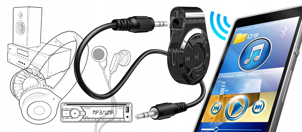 Umożliwia bezprzewodowy przesył dźwięku ze smartfona/tabletu/laptopa z funkcją Bluetooth do wszystkich urządzeń audio wyposażonych w wejście mini jack 3.5mm lub RCA nie obsługujących technologii Bluetooth.