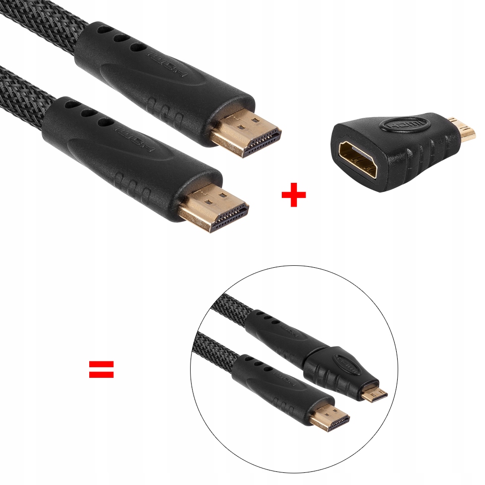 Kabel HDMI o dużej szybkości transmisji z Ethernetem. W zestawie adapter umożliwiający przesyłanie sygnału video HD bezpośrednio ze smartfona/tableta/aparatu/kamery do telewizora wyposażonego w wejście HDMI.