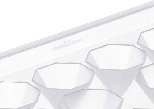 Kostkarka do lodu DIAMOND oferuje miejsce na 18 kostek lodu w oryginalnym kształcie rombu. Jest bezpiecznie zamknięty odpowiednią pokrywką, która zapobiega wydostawaniu się płynów z zamrażarki. Pojemnik nadaje się do zamrażania do -40 ° C i po użyciu jest po prostu czyszczony w zmywarce do naczyń bez deformacji. Oczywiście zastosowane tworzywo sztuczne (polipropylen) nie zawiera szkodliwych składników, takich jak BPA. Przygotuj jeszcze chłodniejsze napoje za pomocą kostkarki do lodu DIAMOND i zaskocz gości niezwykłymi kostkami lodu!