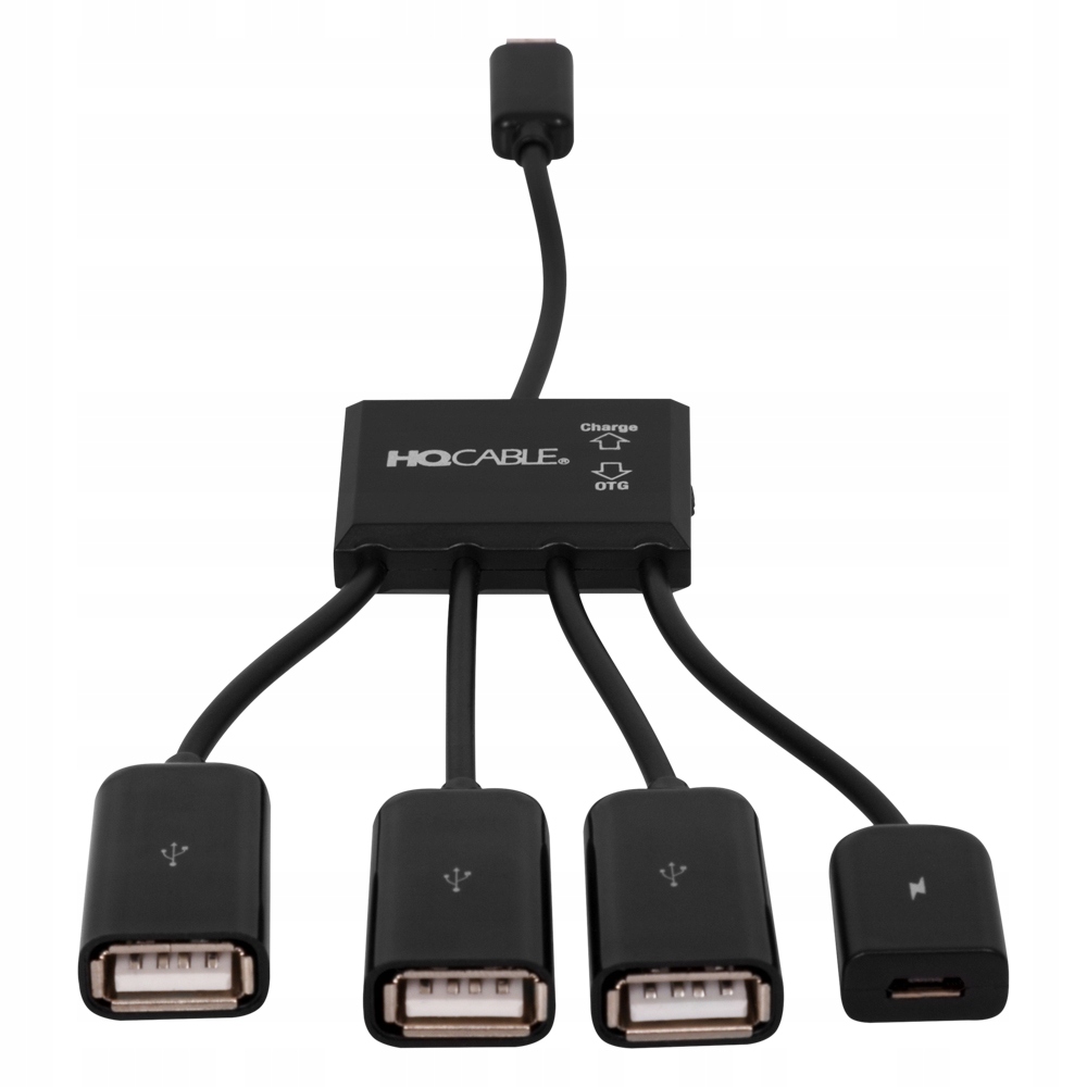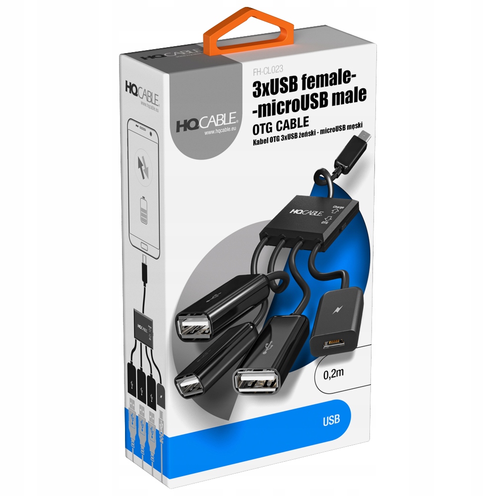 Kabel OTG 3xUSB żeński-microUSB męski HQCABLE 0.2m