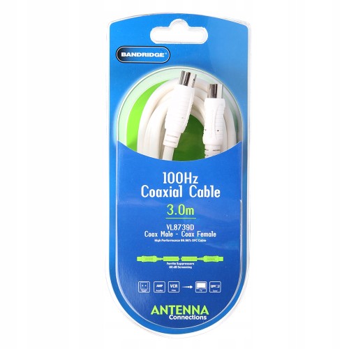 Kabel antenowy 100Hz wtyk COAX - gniazdo COAX Bandridge 3m Bandridge VL-8730D