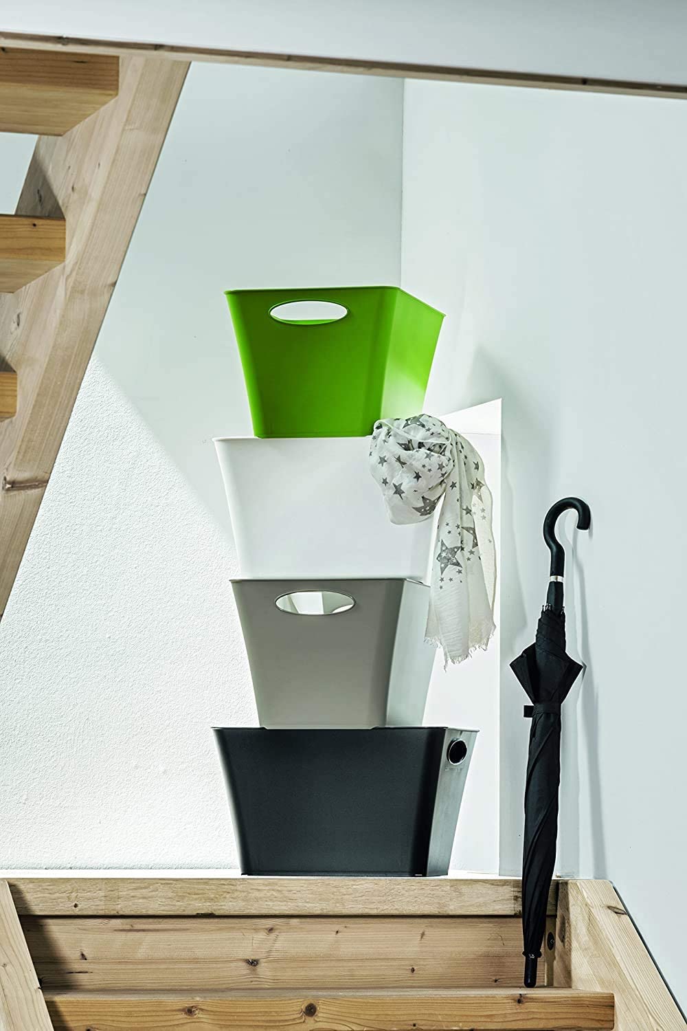 Plastikowy kosz LIVING o wymiarach 431 x 321 x 260 mm (DxSxW) i pojemności 24 l jest polecany do przechowywania wszelkiego rodzaju rzeczy. Wytrzymały plastik jest łatwy do czyszczenia i gwarantuje, że nie zawiera substancji uczulających. Dzięki praktycznemu uchwytowi na dłuższych bokach możesz łatwo przenosić te uniwersalne kosze, jeśli umieścisz je na półkach lub szafkach. Możesz polegać na trwałości tego plastikowego kosza: jak w przypadku wszystkich produktów Rotho, korzystasz z długoterminowej gwarancji. Sprytnie wykorzystaj te kosze do archiwizacji, stwórz własny porządek i dodaj akcenty kolorystyczne według własnego uznania.
