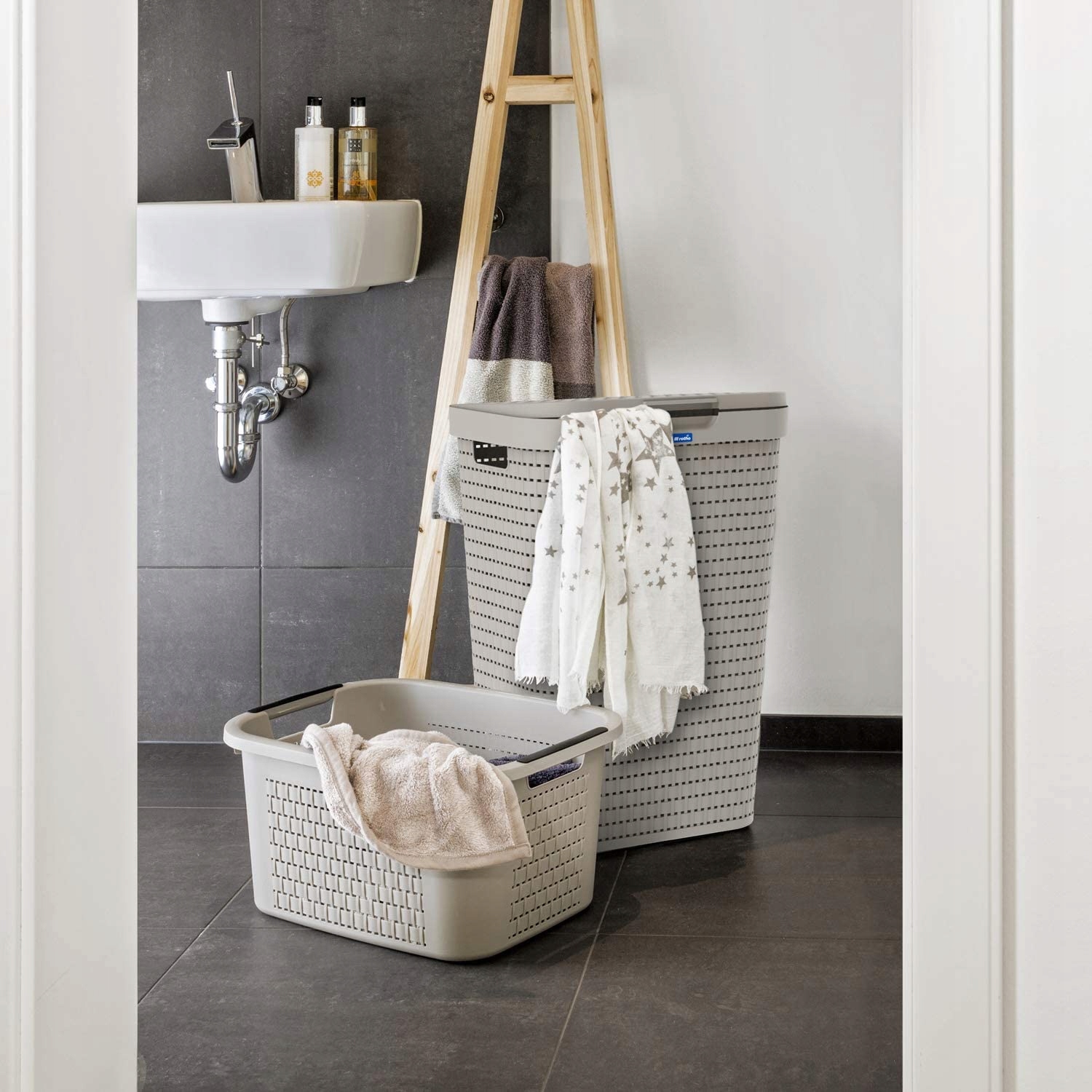 Kosz na bieliznę COUNTRY pomieści do 55 l prania i dzięki wąskiemu kształtowi zajmuje wyjątkowo mało miejsca. Jego ażurowa konstrukcja z rattanu prezentuje się elegancko i nowocześnie, jednocześnie zapewnia cyrkulację powietrza ze wszystkich czterech stron - a tym samym poprawę higieny. Dwa ergonomicznie zaprojektowane uchwyty po bokach umożliwiają łatwy transport pojemnika. Niska waga oraz wysokiej jakości obróbka bez narożników i krawędzi kosza na bieliznę zapewniają optymalny komfort. Kosz na bieliznę COUNTRY jest dostępny w różnych atrakcyjnych kolorach, które można dostosować do każdego otoczenia. Z tym pomocnikiem domowym zbierzesz brudną bieliznę w sposób dyskretny i oszczędzający miejsce!