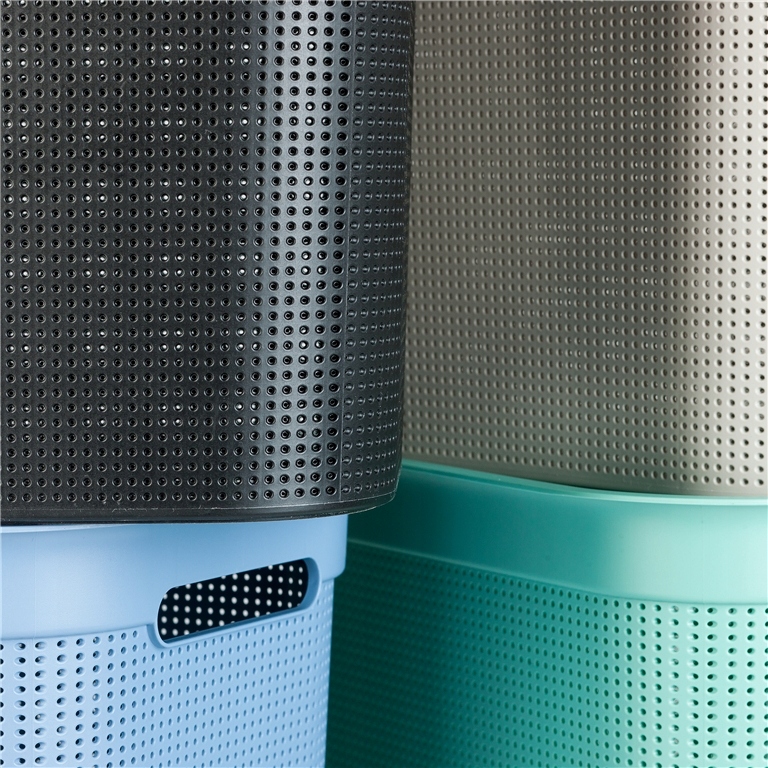 Kosz na pranie bieliznę 50L z pokrywą Brisen charakteryzuje prosty i stylowy design. Świetnie komponuje się z klasyczną jak i nowoczesną aranżacją wnętrz. Ażurowa konstrukcja zapewnia cyrkulację powietrza. Posiada uchwyty ułatwiające użytkowanie produktu. Wykonany z wysokiej jakości tworzywa sztucznego.