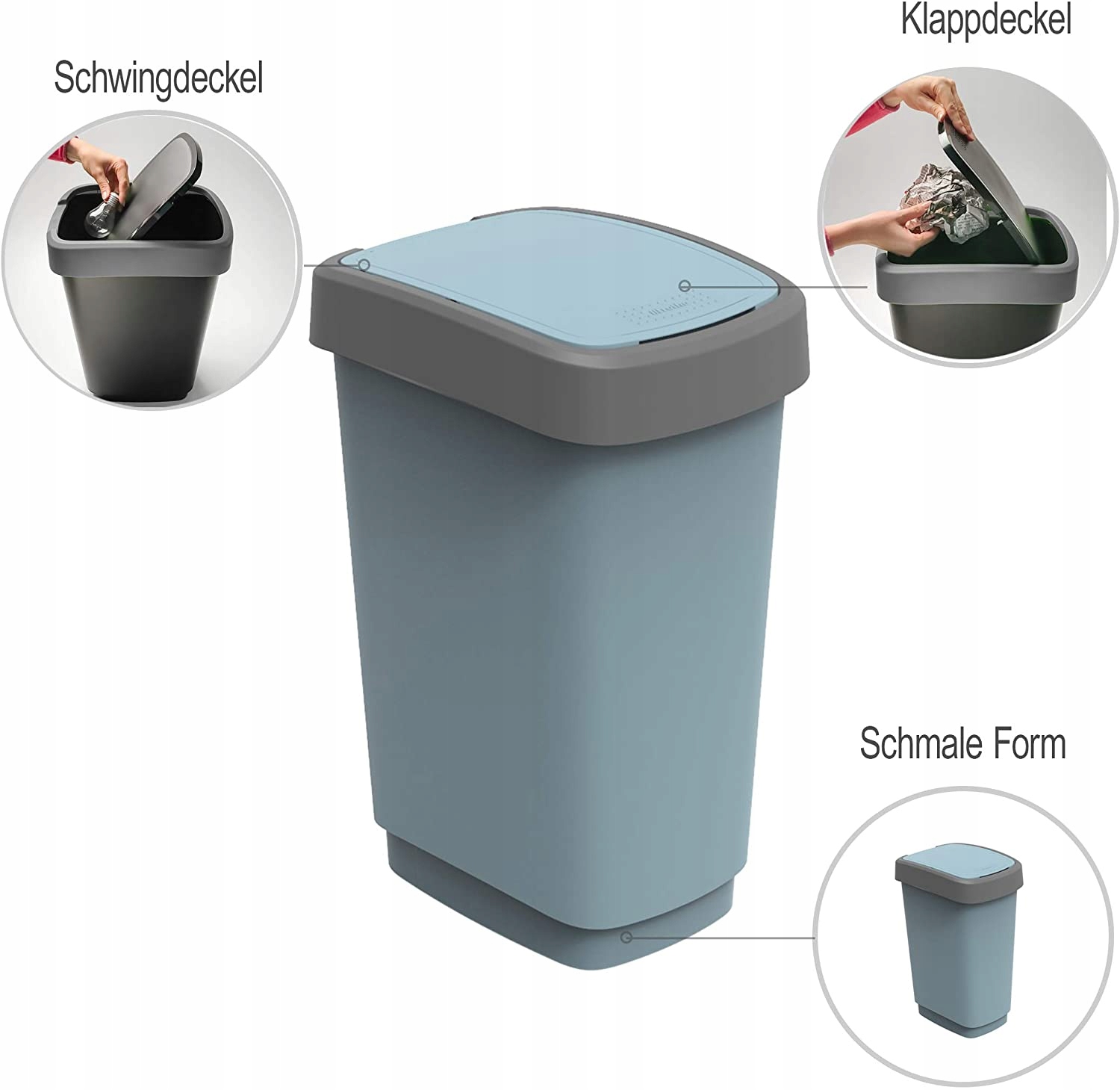 Dzięki wymiarom 333 x 252 x 476 mm (dł. X szer. X wys.) kosz na śmieci TWIST mieści 25 l i można go bardzo dobrze łączyć z innymi. Pojemniki o różnych kolorach mają odchylaną pokrywę, która nie tylko niezawodnie i bezgłośnie zamyka się, ale może być również obsługiwana w sposób oszczędzający miejsce. Ponadto możesz po prostu sięgnąć pod szeroką krawędź pokrywy, która idealnie przykrywa worek na śmieci, aby można było bardzo łatwo przenosić kosz. Oczywiście kosz na śmieci wykonany jest z wysokiej jakości plastiku, który zachwyca swoją trwałością i jest odpowiedni dla alergików.