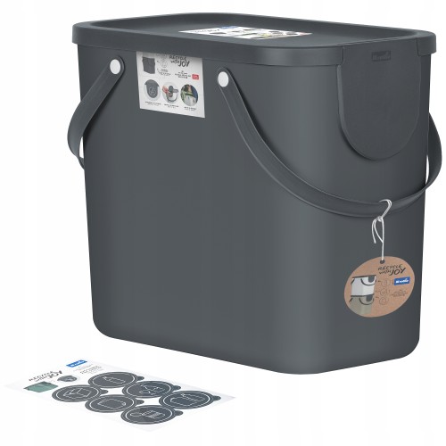 ALBULA to nazwa wyrafinowanego, modułowego systemu recyklingu firmy Rotho, który można stosować w wielu obszarach. Czy to w kuchni, czy w biurze, system odpadów z pokrywą pozwala łatwo dzielić odpady. Różne kubełki z tworzywa sztucznego można łatwo układać jeden na drugim, dzięki czemu można je doskonale stosować nawet w pomieszczeniach o małej przestrzeni. A kiedy nie jest używany, po prostu układasz różne wiadra razem. Dzięki uchwytom można je z łatwością transportować, a po użyciu wyczyścić np w zmywarce lub za pomocą wody i detergentu. W komplecie znajdują się naklejki zapewniające podgląd na to co znajduję się w danym koszu. Tak więc szybki rzut oka na kosz na śmieci i wiesz, gdzie należy umieścić butelki PET, szkło lub papier. ALBULA jest wykonana z plastiku pochodzącego z recyklingu i zachwyca solidną konstrukcją. Poszczególne wiadra mają pojemność 25 litrów. Dzięki pokrywkom pojemniki na śmieci z można dobrze zamknąć.