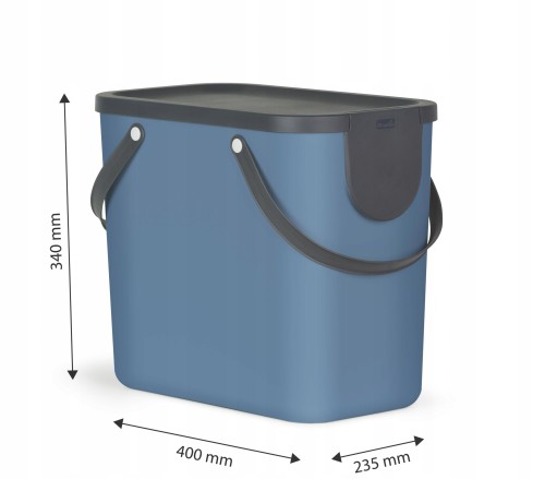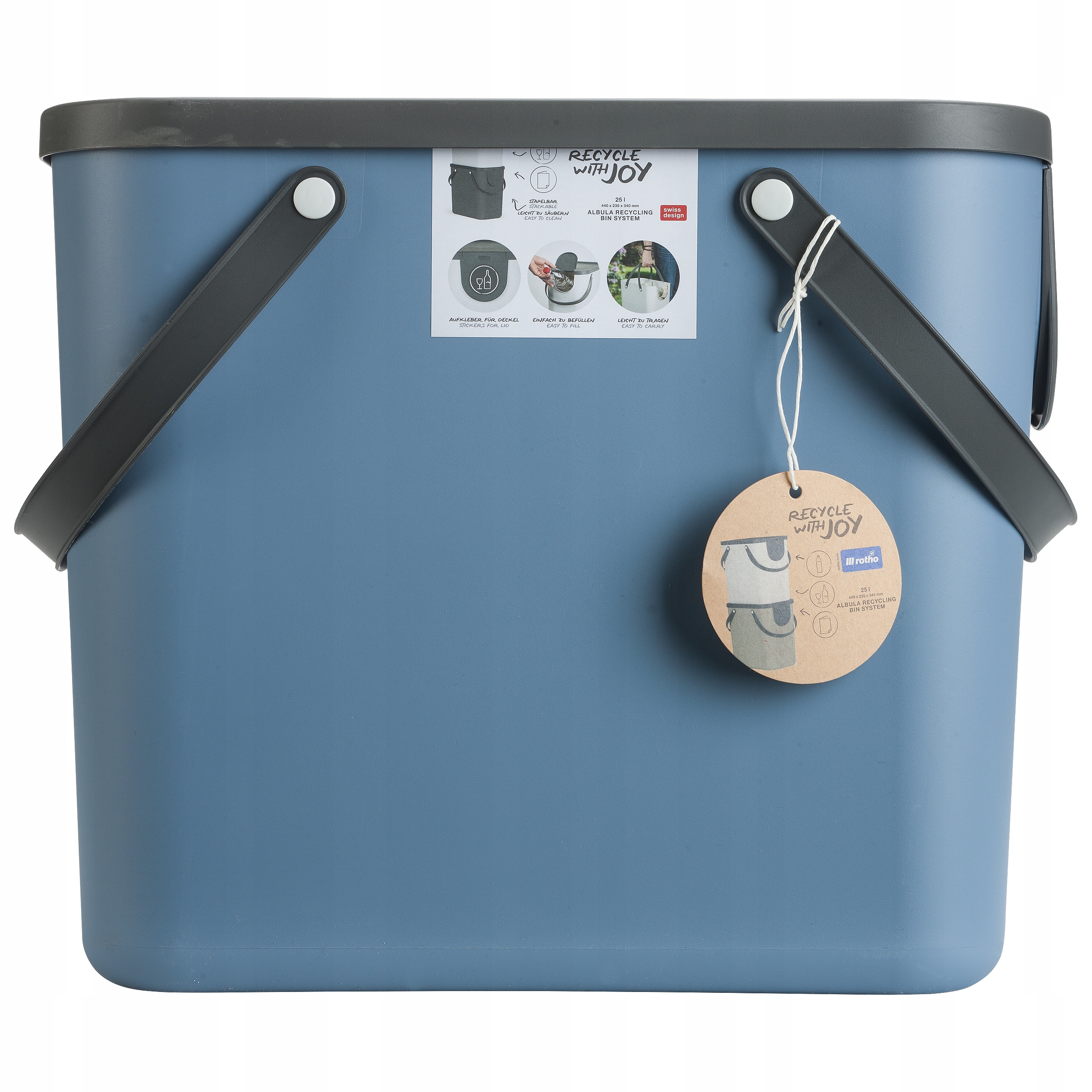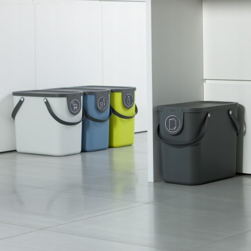 ALBULA to nazwa wyrafinowanego, modułowego systemu recyklingu firmy Rotho, który można stosować w wielu obszarach. Czy to w kuchni, czy w biurze, system odpadów z pokrywą pozwala łatwo dzielić odpady. Różne kubełki z tworzywa sztucznego można łatwo układać jeden na drugim, dzięki czemu można je doskonale stosować nawet w pomieszczeniach o małej przestrzeni. A kiedy nie jest używany, po prostu układasz różne wiadra razem. Dzięki uchwytom można je z łatwością transportować, a po użyciu wyczyścić np w zmywarce lub za pomocą wody i detergentu. W komplecie znajdują się naklejki zapewniające podgląd na to co znajduję się w danym koszu. Tak więc szybki rzut oka na kosz na śmieci i wiesz, gdzie należy umieścić butelki PET, szkło lub papier. ALBULA jest wykonana z plastiku pochodzącego z recyklingu i zachwyca solidną konstrukcją. Poszczególne wiadra mają pojemność 25 litrów. Dzięki pokrywkom pojemniki na śmieci z można dobrze zamknąć.