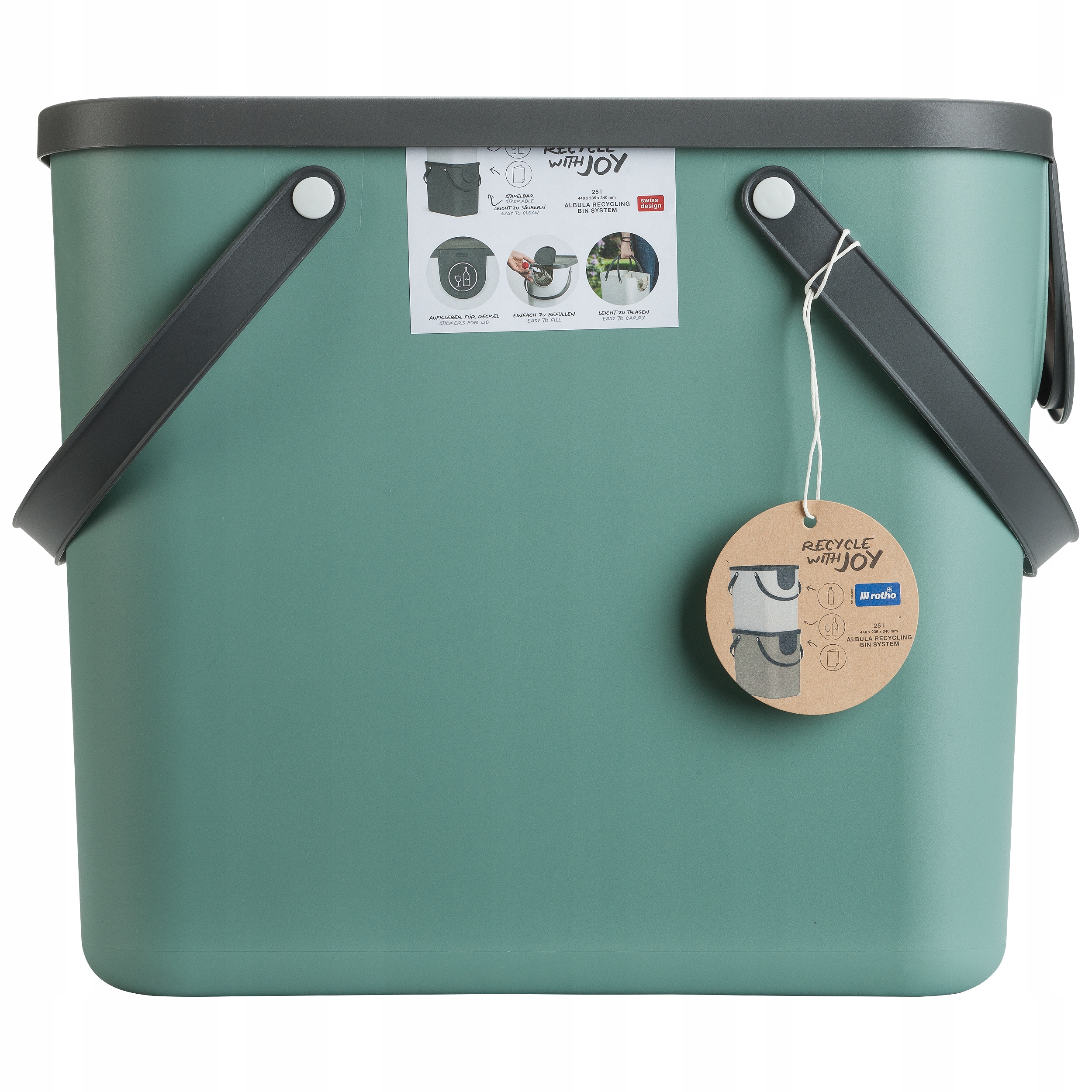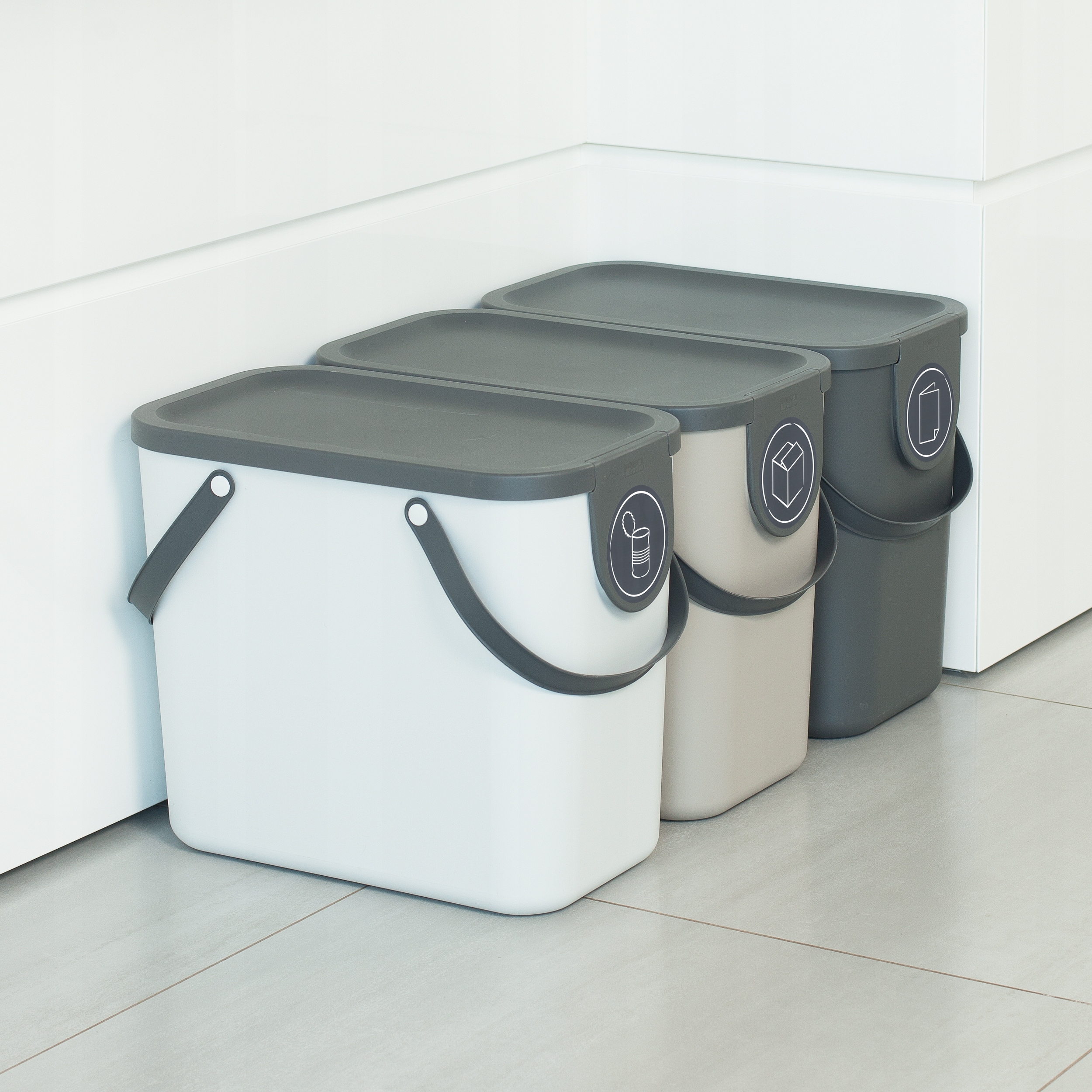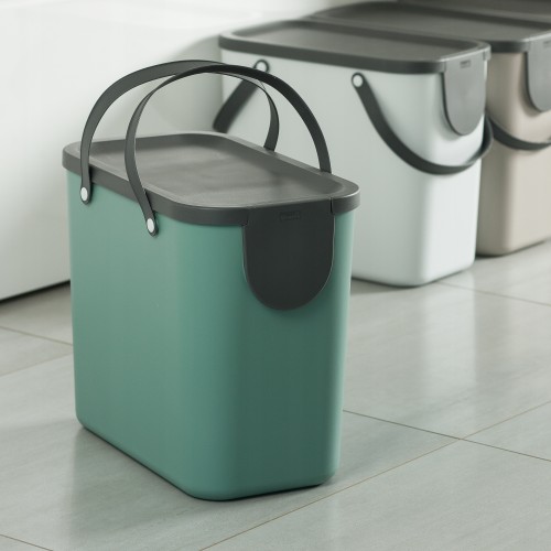 ALBULA to nazwa wyrafinowanego, modułowego systemu recyklingu firmy Rotho, który można stosować w wielu obszarach. Czy to w kuchni, czy w biurze, system odpadów z pokrywą pozwala łatwo dzielić odpady. Różne kubełki z tworzywa sztucznego można łatwo układać jeden na drugim, dzięki czemu można je doskonale stosować nawet w pomieszczeniach o małej przestrzeni. A kiedy nie jest używany, po prostu układasz różne wiadra razem. Dzięki uchwytom można je z łatwością transportować, a po użyciu wyczyścić np w zmywarce lub za pomocą wody i detergentu. W komplecie znajdują się naklejki zapewniające podgląd na to co znajduję się w danym koszu. Tak więc szybki rzut oka na kosz na śmieci i wiesz, gdzie należy umieścić butelki PET, szkło lub papier. ALBULA jest wykonana z plastiku pochodzącego z recyklingu i zachwyca solidną konstrukcją. Poszczególne wiadra mają pojemność 25 litrów. Dzięki pokrywkom pojemniki na śmieci z można dobrze zamknąć.