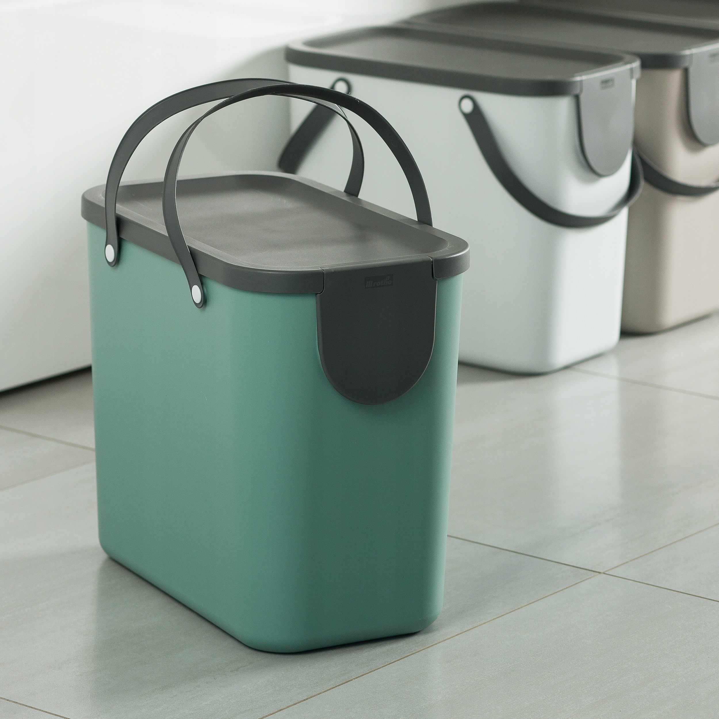 System do recyklingu odpadów Rotho ALBULA 25 litrów - sprytny system segregacji odpadów dla kuchni, łazienki i firmy.