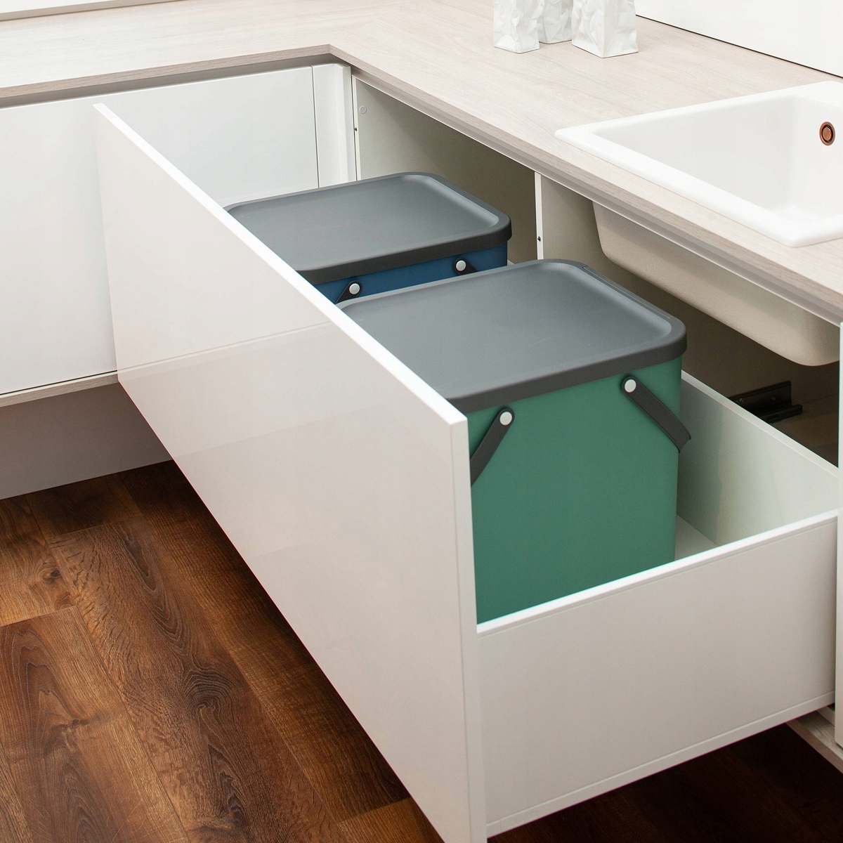 ALBULA to nazwa przemyślanego, modułowego systemu recyklingu firmy Rotho, który można zastosować w wielu obszarach gospodarstwa domowego. Czy to w kuchni, czy w biurze, system na śmieci z pokrywą pozwala łatwo segregować odpady domowe. Różne plastikowe wiadra można łatwo układać jeden na drugim, dzięki czemu można je doskonale stosować również w pomieszczeniach o małej powierzchni. A gdy nie są używane, po prostu układaj różne wiadra jedno w drugie. Za pomocą uchwytów można również łatwo transportować kosze na śmieci Rotho. A po użyciu czas na czyszczenie, które można łatwo zrobić wodą i płynem do mycia naczyń. Albo po prostu włożysz innowacyjny system segregacji odpadów do zmywarki.
