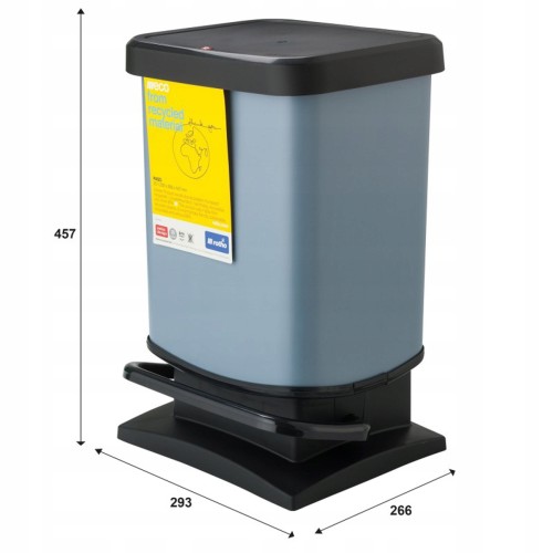 Kosz na śmieci z pedałem PASO w kolorze srebrnym zachwyca wysoką jakością produktu i trwałością. Dzięki wymiarom 29,3 x 26,6 x 45,7 cm i pojemności 20 litrów ten pojemnik na śmieci nadaje się szczególnie do małych i średnich pomieszczeń. Szlachetny wygląd stali nierdzewnej jest niewrażliwy na rdzę i wgniecenia i nadaje się do bezpiecznego użytkowania w mokrych pomieszczeniach. Wiadro wykonane z wysokiej jakości tworzywa sztucznego jest jednocześnie lekkie i wytrzymałe. Wygodną obsługę zapewnia praktyczna funkcja schodkowa. Szczelnie zamykająca się pokrywa cicho obniża się i zapewnia niezawodną ochronę przed ulatniającymi się zapachami. Stabilne gumowe nóżki gwarantują bezpieczne ustawienie bez poślizgu, nawet na podłogach z płytek. Za pomocą oddzielnego pierścienia wewnętrznego używane worki na śmieci pozostają niewidoczne. Kosze z pedałem PASO są dostępne w wielu innych kolorach i rozmiarach. Linia PASO obejmuje również kosz na kosmetyki PASO o pojemności 6 l, „Pedalbin” w rozmiarach 20 l, 40 li 50 l oraz „Pushbin” o pojemności 40 l. Wszystkie kosze z pedałem PASO są poddawane procesom produkcyjnym przyjaznym dla środowiska.