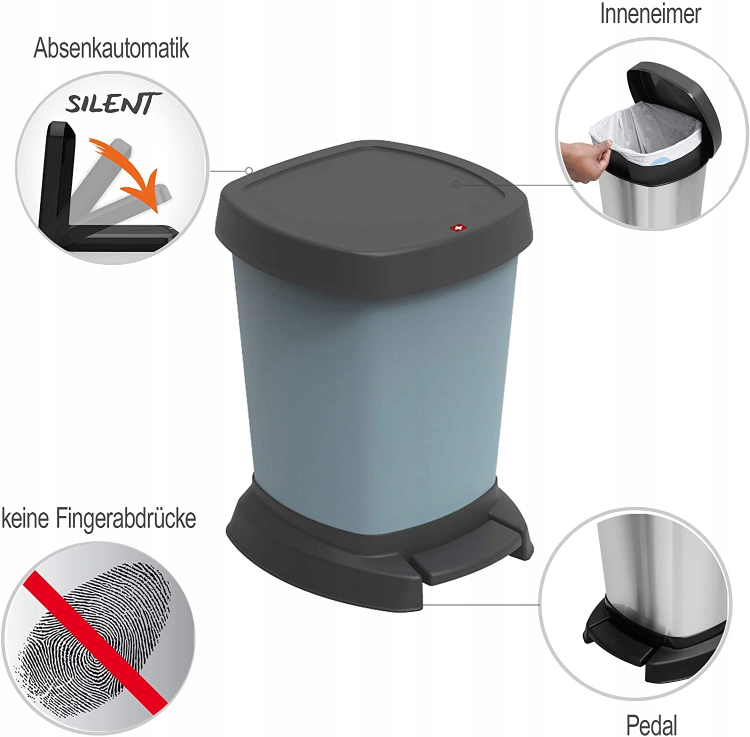 Karbonowy kosz na opakowania po kosmetykach PASO przekonuje wysoką jakością i trwałością produktu. Dzięki wymiarom 23,4 x 21,9 x 29,5 cm i pojemności 6 litrów ten pojemnik na śmieci nadaje się szczególnie do małych i średnich pomieszczeń. Prawdziwa metalowa obudowa o szlachetnym wyglądzie stali nierdzewnej jest niewrażliwa na rdzę i wgniecenia i nadaje się do bezpiecznego użytkowania w mokrych pomieszczeniach. Kosz wykonany z wysokiej jakości tworzywa sztucznego jest jednocześnie lekki i wytrzymały. Wygodną obsługę zapewnia praktyczna funkcja schodkowa. Szczelnie zamykająca się pokrywa cicho obniża się i zapewnia niezawodną ochronę przed ulatniającymi się zapachami. Stabilne gumowe nóżki gwarantują bezpieczne ustawienie bez poślizgu, nawet na podłogach z płytek. Kosz na odpady po kosmetykach w razie potrzeby można nawet umyć w zmywarce. Kosze na opakowania po kosmetykach PASO są dostępne w wielu innych wariantach kolorystycznych i objętościowych. Linia PASO obejmuje również kosze z pedałami „Pedalbin” w rozmiarach 20 l, 40 li 50 l oraz „Pushbin” o pojemności 40 l. Wszystkie kosze z pedałami PASO są poddawane procesom produkcyjnym przyjaznym dla środowiska i są objęte dwudziestoletnią gwarancją trwałości.