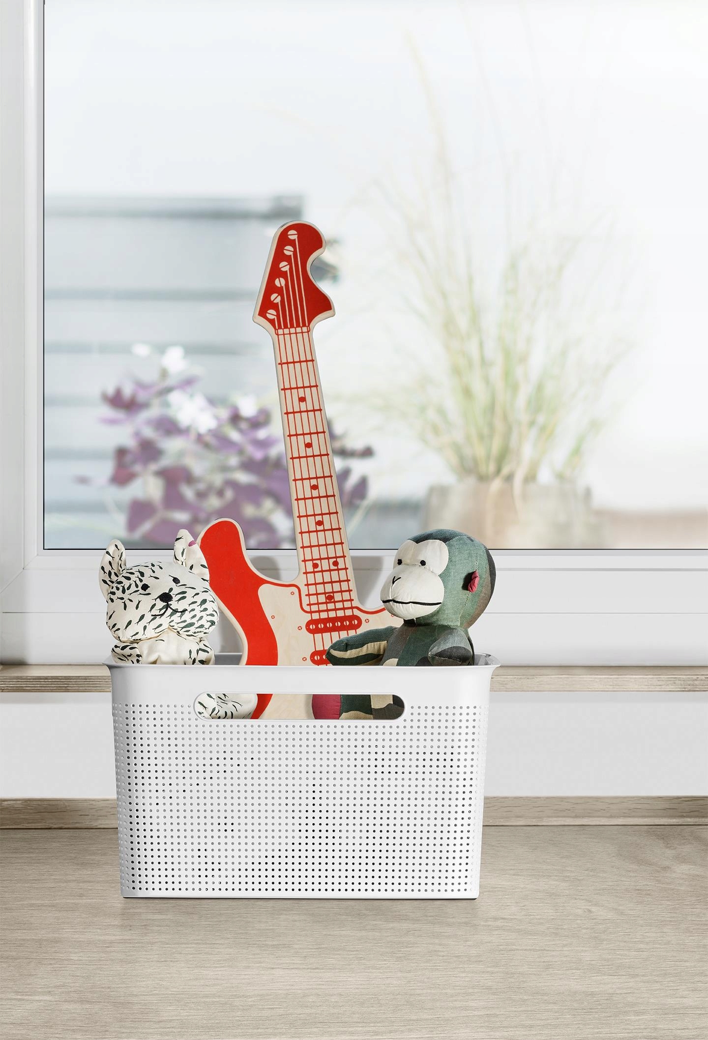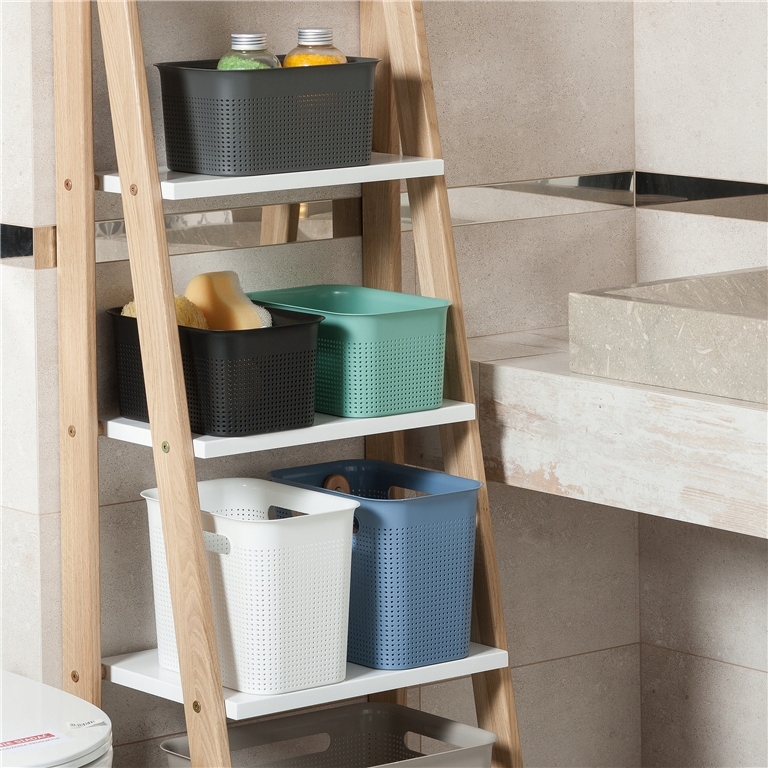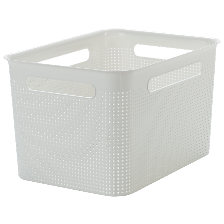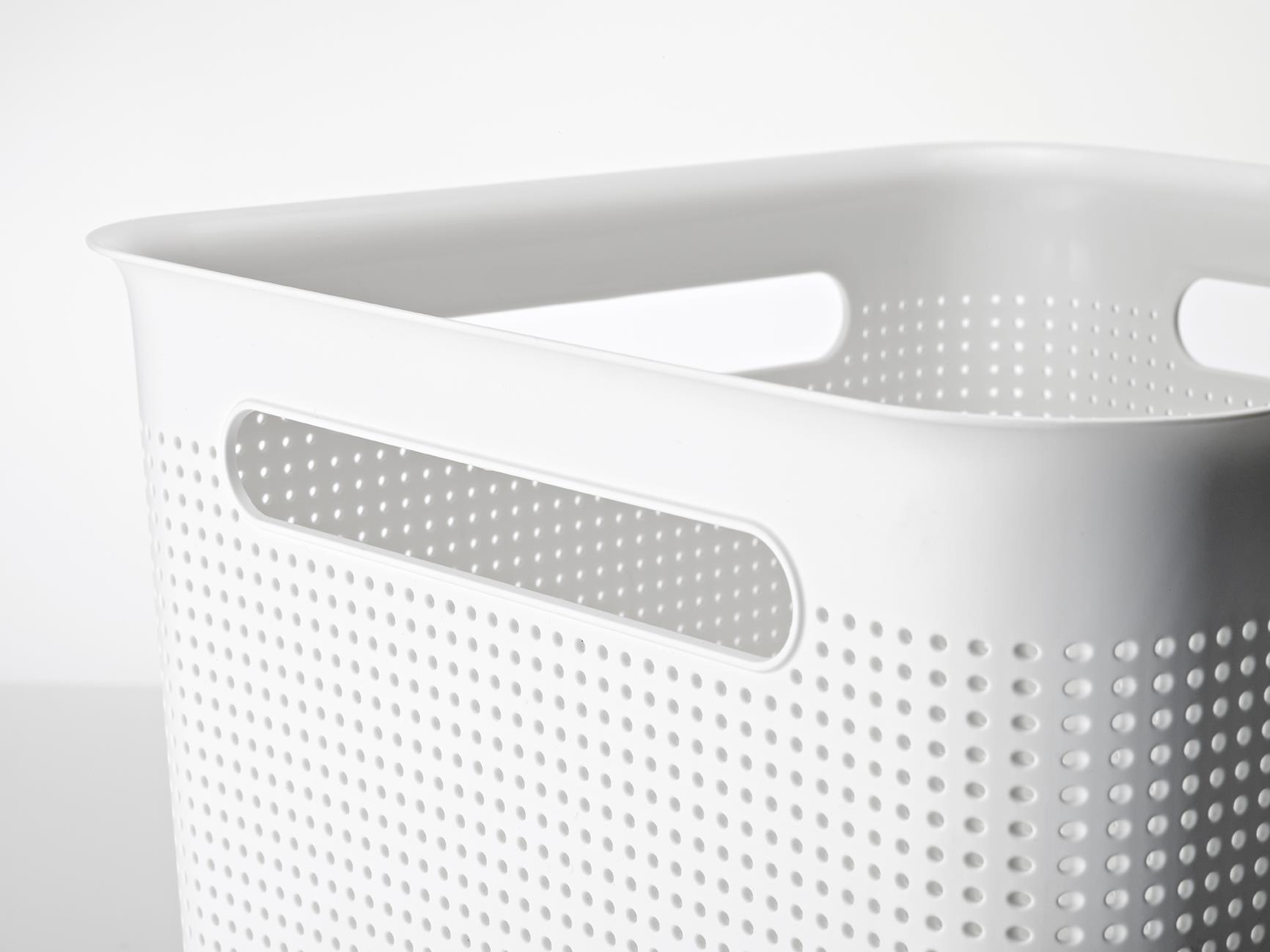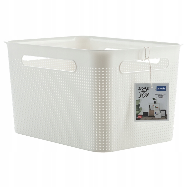 Pojemnik, koszyk do przechowywania Brisen charakteryzuje prosty i stylowy design. Świetnie komponuje się z klasyczną jak i nowoczesną aranżacją wnętrz. Unikalny i ergonomiczny kształt produktu pozwoli w prosty sposób zagospodarować wolną przestrzeń regału czy półki. Posiada uchwyty ułatwiające użytkowanie produktu. Wykonany z wysokiej jakości tworzywa sztucznego.
