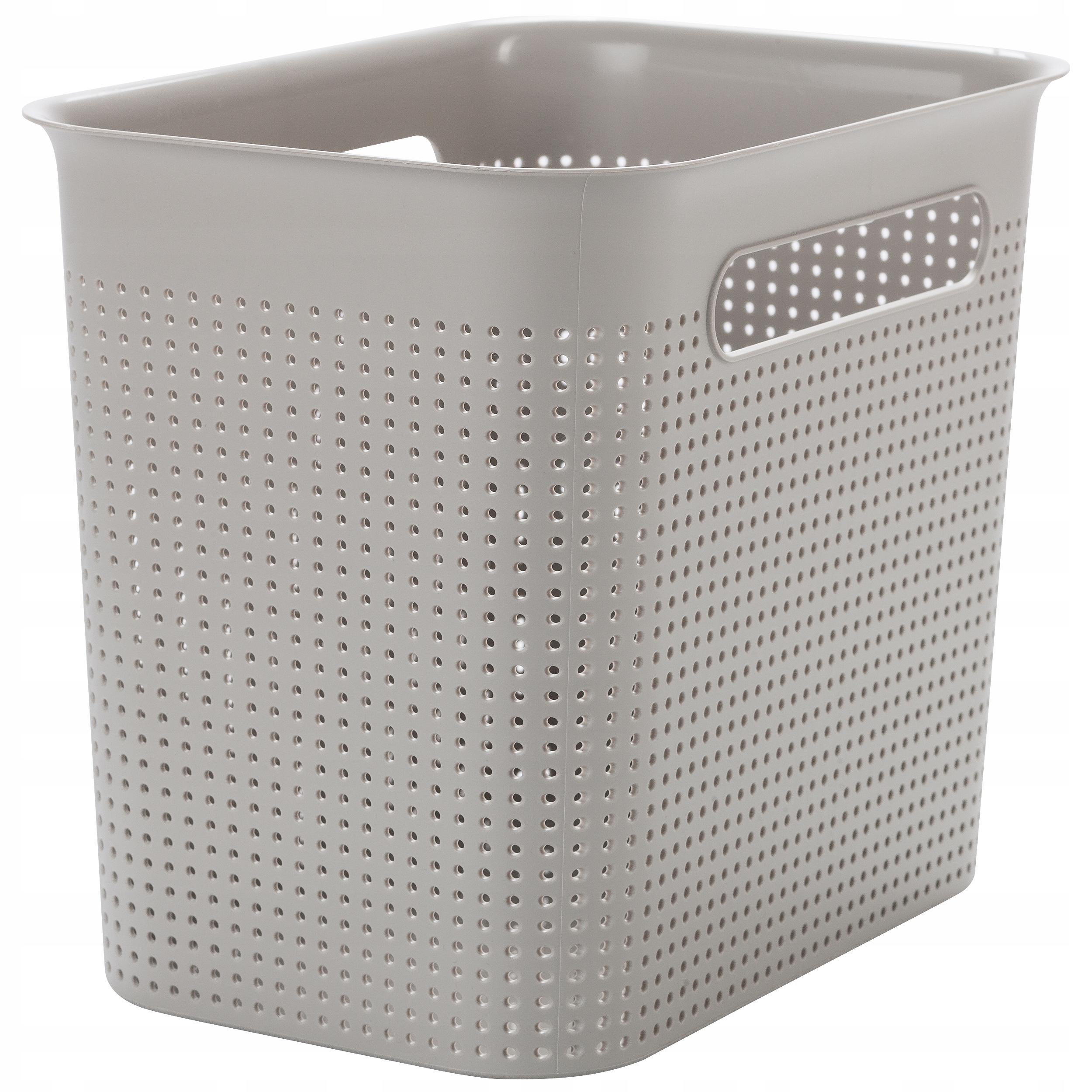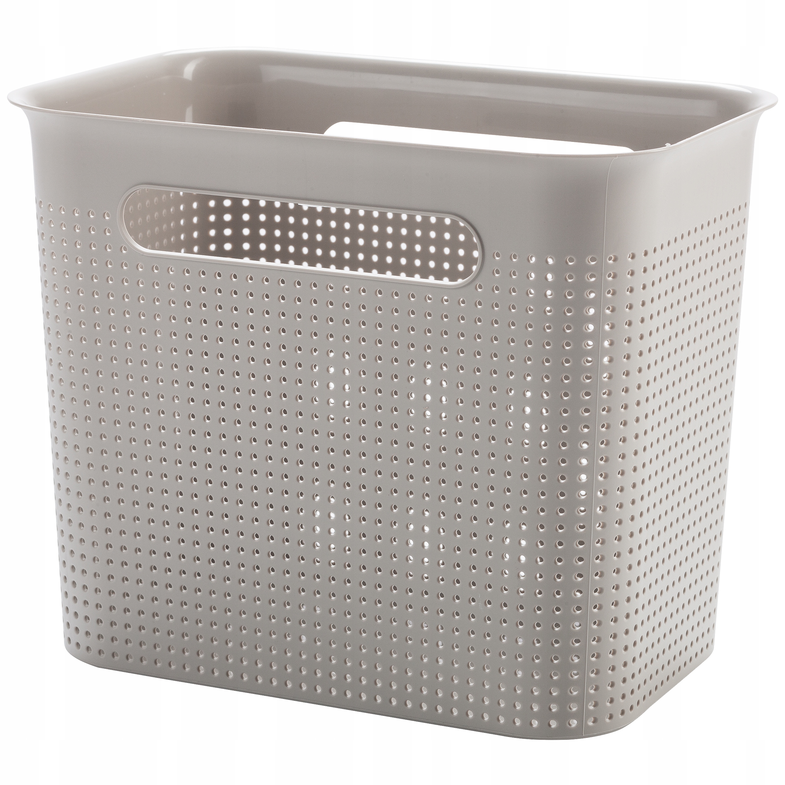 Pojemnik, koszyk do przechowywania Brisen charakteryzuje prosty i stylowy design. Świetnie komponuje się z klasyczną jak i nowoczesną aranżacją wnętrz. Unikalny i ergonomiczny kształt produktu pozwoli w prosty sposób zagospodarować wolną przestrzeń regału czy półki. Posiada uchwyty ułatwiające użytkowanie produktu. Wykonany z wysokiej jakości tworzywa sztucznego.