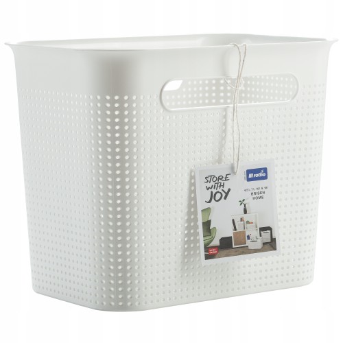 Pojemnik, koszyk do przechowywania Brisen charakteryzuje prosty i stylowy design. Świetnie komponuje się z klasyczną jak i nowoczesną aranżacją wnętrz. Unikalny i ergonomiczny kształt produktu pozwoli w prosty sposób zagospodarować wolną przestrzeń regału czy półki. Posiada uchwyty ułatwiające użytkowanie produktu. Wykonany z wysokiej jakości tworzywa sztucznego.