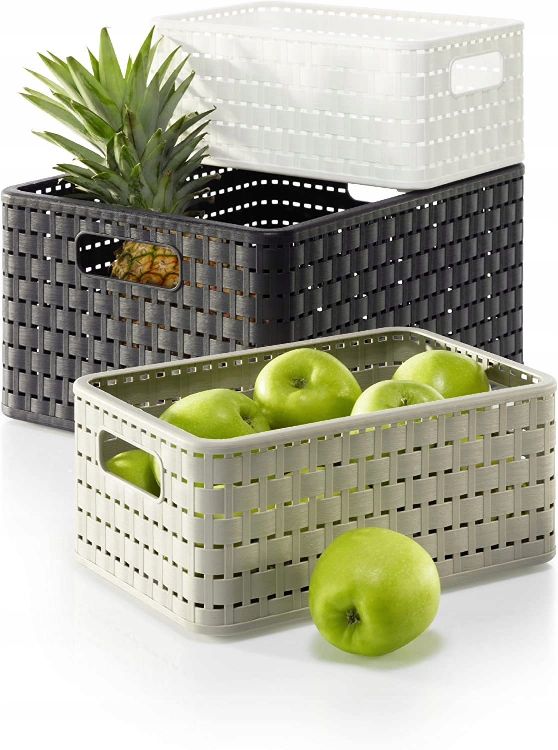 Kosz COUNTRY A4 + w kolorze białym o wymiarach 430 x 330 x 215 mm (dł. X szer. X wys.). Charakteryzuje się domowym wyglądem rattanu. Każde plastikowe pudełko nadaje się do życia bez alergii. Prostokątne ozdobne pudełko o pojemności 28 litrów nadaje się do przechowywania większych i mniejszych przedmiotów. Wytrzymałe kosze COUNTRY można bezpiecznie zamknąć za pomocą oddzielnie dostępnych pokrywek, aby zapewnić wolne od pyłu składowanie. Dzięki szerokiej gamie kolorów dekoracyjne pudełka do przechowywania uzupełniają nowoczesne meble mieszkalne i rustykalne. System organizacji COUNTRY oferuje kosze prostokątne i kwadratowe w rozmiarach: A6, A6 +, A5, A5 +, A4, A4 +. Ładne pudełka w formacie A4 uzupełniają wieżę COUNTRY od Rotho.