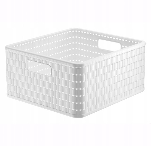 Kosz COUNTRY A4 kwadratowy w kolorze białym o wymiarach 328 x 300 x 160 mm (dł. X szer. X wys.). Charakteryzuje się domowym wyglądem rattanu. Każde plastikowe pudełko nadaje się do życia bez alergii. Prostokątne ozdobne pudełko o pojemności 14 litrów nadaje się do przechowywania większych i mniejszych przedmiotów. Dzięki szerokiej gamie kolorów dekoracyjne pudełka do przechowywania uzupełniają nowoczesne meble mieszkalne i rustykalne. System organizacji COUNTRY oferuje kosze prostokątne i kwadratowe w rozmiarach: A6, A6 +, A5, A5 +, A4, A4 +. Ładne pudełka w formacie A4 uzupełniają wieżę COUNTRY od Rotho.