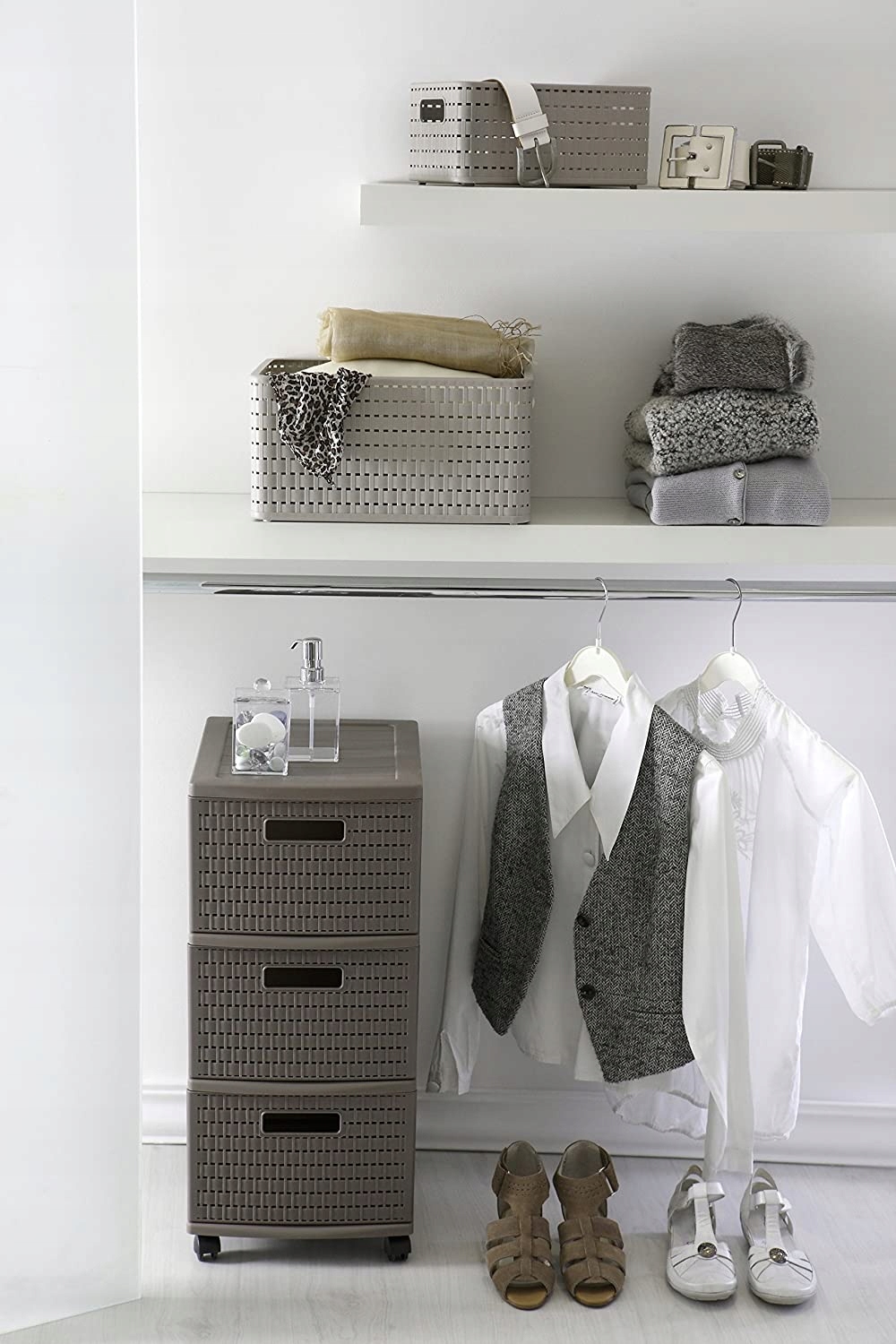 Schludne życie bez długich poszukiwań - dzięki koszykom Rotho COUNTRY jest to w końcu możliwe. Niezależnie od tego, czy jest to miejsce do przechowywania czasopism w salonie, czy na korytarzu, czy jako miejsce na chusty i czapki, czy też jako pudełko na zabawki, wszystko, co jest otwarte, zmieści się w pudełkach do ustawiania w stosy. Łatwe w utrzymaniu kosze COUNTRY są łatwe do przenoszenia w razie potrzeby z jednego pokoju do drugiego. W łazience niewrażliwe na wilgoć pojemniki zapewniają uporządkowane i bezpieczne przechowywanie produktów pielęgnacyjnych lub ręczników gości.