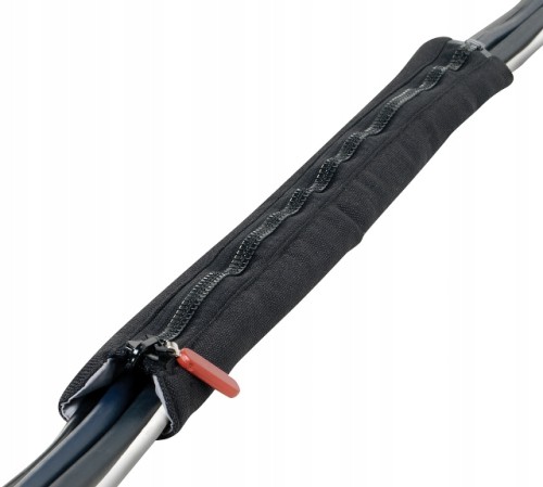 PHA500 to miękka, uniwersalna osłona, która daje możliwość dostosowania długości w zależności od zapotrzebowania. Osłonę można częściowo złożyć lub skrócić, co stanowi niezwykle praktyczne rozwiązanie przy wiązaniu kabli. Wykonana z miękkiego i elastycznego materiału. Wyposażona w suwak ułatwiający ułożenie kabli. W przypadku dużej ilości przewodów użyj dwóch osłon, ułożonych obok siebie.