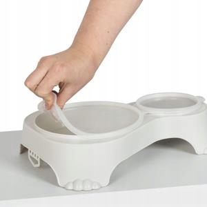 - Podwójna miska na jedzenie i picie o pojemności 1litra oraz 0,28l