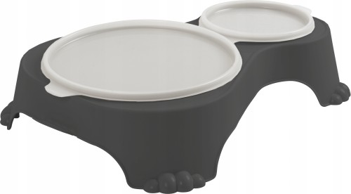 Miska na żywność z antypoślizgowymi stopkami. Praktyczna podwójna miska z pokrywką umożliwia transport karmy i wody lub przechowywanie pozostałej karmy dla zwierząt. Zapach, składniki odżywcze i witaminy w żywności są zachowane. Antypoślizgowe nóżki zapewniają, że miska pozostaje na miejscu, dzięki czemu ukochany zwierzak może jeść w spokoju. Dzięki swojej wielkości miska i pokrywa mogą być wygodnie czyszczone w zmywarce.