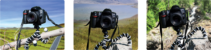 - Gumowe pierścienie i nakładki na końcówki ramion – umożliwiają mocny „chwyt” statywu.