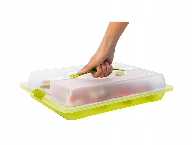 Ciasta lub babeczki mogą zostać bezpiecznie zapakowane do pojemnika transportowego John i są łatwe do przenoszenia dzięki zintegrowanemu uchwytowi. Takie rozwiązanie spowoduje, że nie doświadczysz żadnych przykrych niespodzianek w miejscu przeznaczenia. Przezroczysta pokrywa zapewnia wyraźny widok zawartości pojemnika jednocześnie zapobiegając wysychaniu żywności. Mrówki, owady i inne zwierzęta również nie mogą dostać się do jedzenia.
