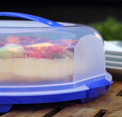 Jak denerwujące jest to, że pięknie wykonana dekoracja na cieście pada ofiarą złego sposobu jego transportu! Pojemnik na ciasto gwarantuje, że Twoje słodkie smakołyki dotrą bezpiecznie do miejsca docelowego. Dzięki bezpiecznemu zamknięciu i wygodnemu uchwytowi, w który wyposażony jest ten pojemnik ciasta mogą z łatwością przetrwać podróż samochodem lub pieszo. Jednocześnie wypieki są chronione przed wysuszeniem, bezpośrednim działaniem promieni słonecznych i owadami. Praktyczne wycięcia w dolnej części pudełka transportowego umożliwiają cięcie ciasta na dokładnie takie same kawałki. Zamykany pojemnik do ciasta jest również idealny do przechowywania tart, quiche lub pizzy. Dzięki przezroczystemu wieczkowi zawsze możesz zobaczyć, co jest w środku.