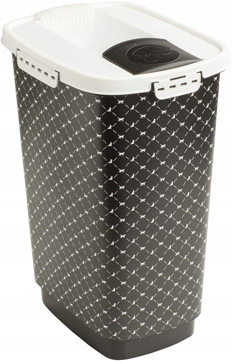 Pojemnik przeznaczony do przechowywania suchej karmy lub żwirku o pojemności 25L lub max 18kg (uzależnione od granulacji oraz gęstości karmy). Szczelna pokrywa z uszczelką pomoże nie tylko zachować aromat i odpowiednią teksturę pokarmu, ale zapobiegnie również utracie wartościowych składników odżywczych, powstrzymując dodatkowo intensywny zapach typowy dla tej formy żywności przed wydostawaniem się na zewnątrz i rozchodzeniem po mieszkaniu. Odpowiednio rozmieszczone uchwyty ułatwiają utrzymanie pojemnika podczas przesypywania karmy, a uchylna klapka w pokrywie zapobiega jej przypadkowemu rozsypywaniu. Łopatka dołączona do pojemnika będzie dodatkowym udogodnieniem przy odmierzaniu konkretnych ilości pożywienia.