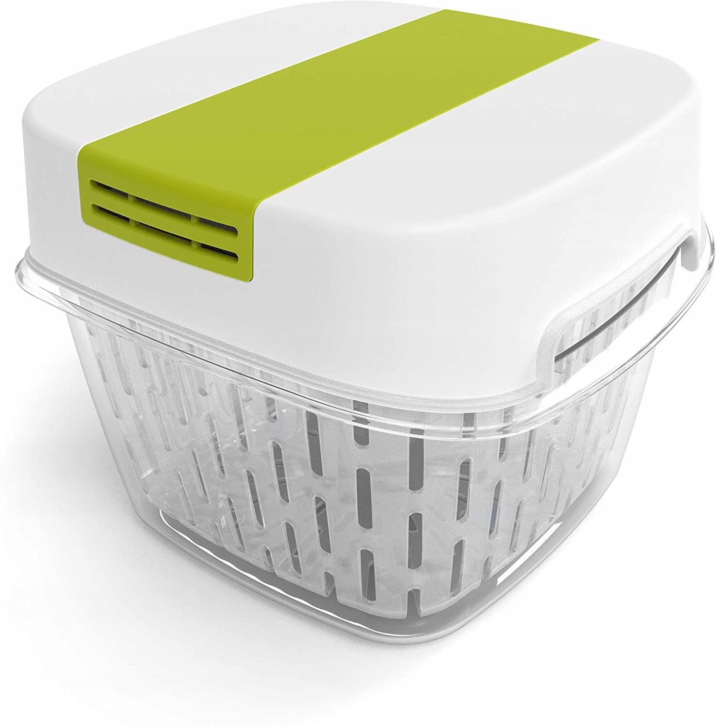 Szczeliny powietrzne w pokrywie zapewniają optymalną wilgotność. Wewnętrzny pojemnik wyposażony w otwory wentylacyjne sprzyja prawidłowej cyrkulacji powietrza.