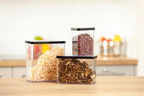 Schludne przechowywanie jest łatwe dzięki pojemnikowi LOFT firmy Rotho. Jeśli prowadzisz wieloosobowe gospodarstwo domowe, to wiesz, jak trudno jest śledzić wszystkie przechowywane zapasy. Wysoce przezroczysty pojemnik LOFT umożliwia wgląd w jego zawartość, dzięki czemu zawsze możesz zobaczyć, co jest, a czego brakuje. Makaron, ryż lub musli są przechowywane w pojemniku do przechowywania żywności Rotho bez żadnych aromatów i chronione przed molami spożywczymi. Kiełbasę i ser można bezpiecznie przechowywać w pojemniku LOFT w lodówce lub zamrażarce bez tworzenia nieprzyjemnych zapachów.
