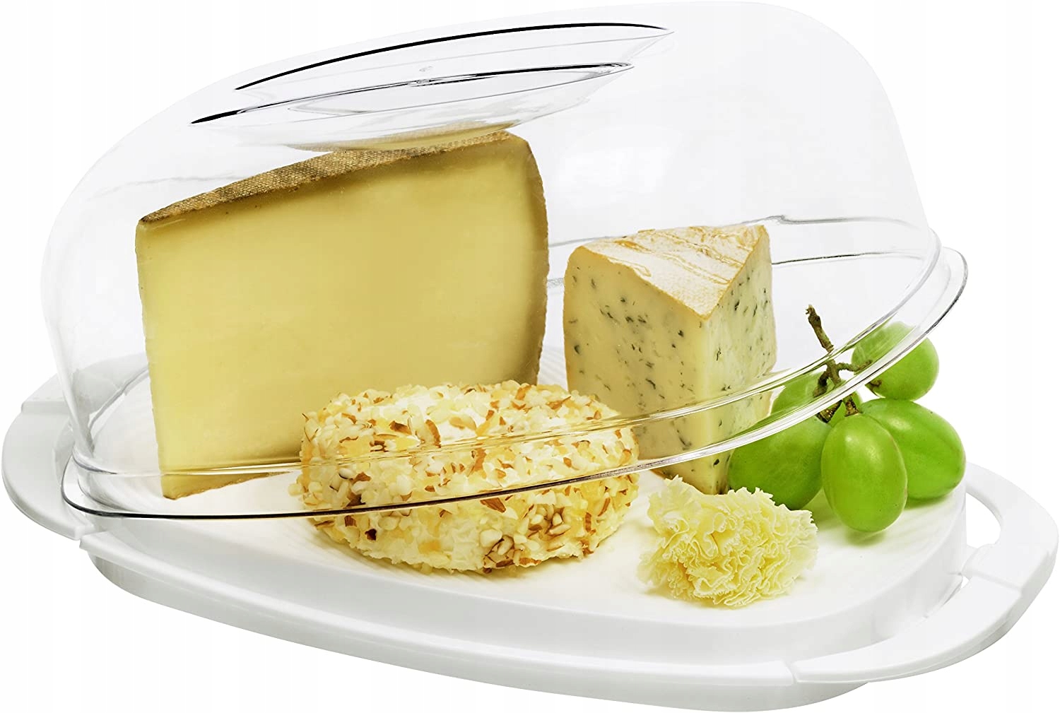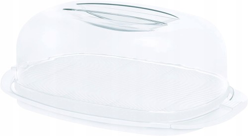 Pojemnik na ser FRESH o pojemności 5 litrów przyciąga wzrok ze względu na przyjemny kształt, który wzbogaca każdy bufet. Przezroczysta pokrywa umożliwia w każdej chwili wgląd w zawartość pojemnika o wymiarach 290 x 170 x 105 mm (dł. X szer. X wys.). Kopułka do sera FRESH posiada bezpieczny mechanizm blokujący: pokrywę odblokowuje się przez lekkie naciśnięcie i można ją łatwo otworzyć. Lekko uniesiona podstawa pudełka na ser nie ma przeszkadzającej krawędzi, co ułatwia cięcie. Plastik bezpieczny dla żywności ze zrównoważonej produkcji gwarantuje trwałość i długowieczność.