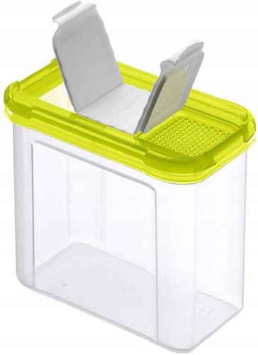 Pojemnik do przechowywania żywności DOMINO ma pojemność 1 l i jest wykonany z wytrzymałego, trwałego i przyjaznego dla środowiska tworzywa sztucznego, które oczywiście nie zawiera BPA i podobnych zanieczyszczeń. Dzięki przezroczystemu materiałowi możesz w każdej chwili zobaczyć zawartość pojemnika. Szczelnie zamykana pokrywa umożliwia bezpieczne i higieniczne przechowywanie wszelkiego rodzaju suchych materiałów żywnościowych. Istnieją dwa różne otwory do wsypywania w pokrywiej, które są zamykane przez mechanizm składania. Dwa rozłożone otwory umożliwiają wygodne i czyste dozowanie żywności. Połącz kilka pojemników w wygodny system przechowywania, który jest nie tylko funkcjonalny, ale także wizualnie poprawia Twoją kuchnię!