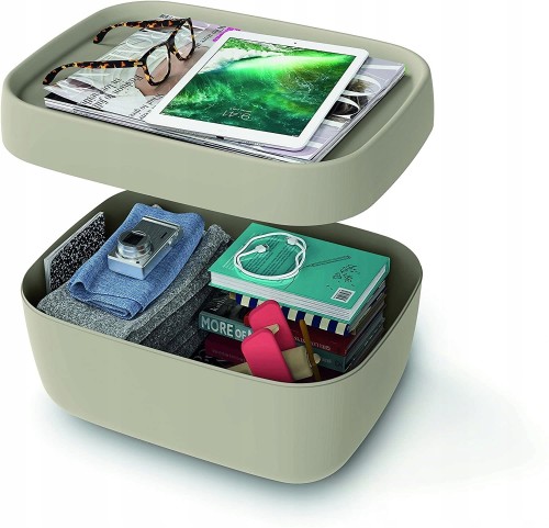 Pojemniki SOFIA to rewolucyjne rozwiązanie ułatwiające organizację domowych oraz biurowych akcesoriów. Organizery SOFIA w przeciwieństwie do zwykłych pudełek codziennego użytku odróżnia nowoczesny i elegancki design, stanowiący idealne uzupełnienie stylowych wnętrz. Zamiast chować pojemniki w szafce, możecie je wyeksponować jako kolejną ozdobę waszego wnętrza. Praktyczna konstrukcja pojemnika pozwala na schowanie akcesoriów do środka a rzeczy takie jak telefon, okulary czy ulubiony miesięcznik, które zawsze powinny być pod ręką, możemy umieścić na specjalnie wyprofilowanej w tym celu pokrywie.