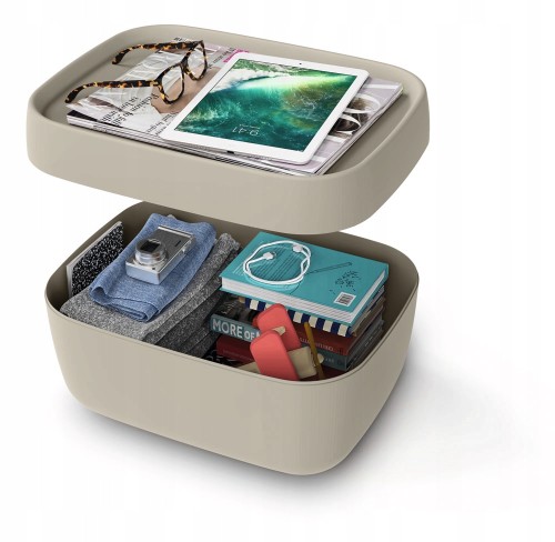- przechowywanie - zyskaj przewagę, jeśli użyjesz pokrywy plastikowego pudełka jako miejsca do przechowywania przedmiotów codziennego użytku, takich jak okulary lub pilot zdalnego sterowania; w ten sposób zapewniony jest szybki dostęp do ważnych obiektów.