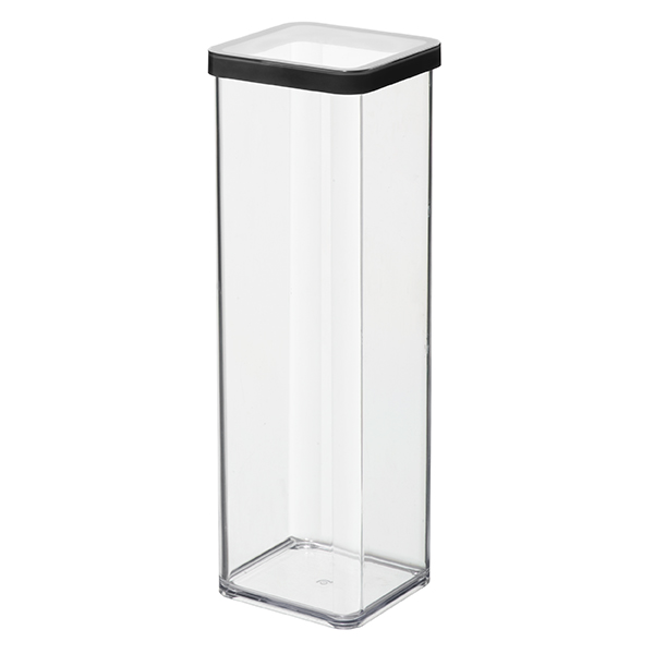 Przezroczyste pudełko LOFT o pojemności 2 litrów to estetyczny pojemnik do przechowywania. Pojemny pojemnik do przechowywania żywności o wymiarach 100 x 100 x 285 mm (dł. X szer. X wys.). Jest idealny do przechowywania żywności komercyjnej. Dzięki czarnemu pierścieniowi uszczelniającemu zawartość pudełka LOFT pozostaje świeża i długotrwała. Pojemnik do przechowywania wykonany z odpornego na zarysowania tworzywa sztucznego można myć w zmywarce i jest stabilny wymiarowo. Do zorganizowanego przechowywania, seria LOFT oferuje pojemniki do przechowywania w następujących rozmiarach: 0,5 l, 1 l (dwa różne rozmiary), 1,5 l, 2 l, 2,1 l, 2,25 li 3,2 l.