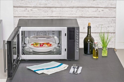 Funkcjonalna pokrywka do mikrofali o średnicy 29 cm. Pasuje do większości kuchenek mikrofalowych. Posiada otwory do odprowadzania pary.