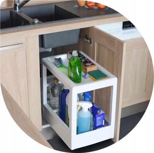 Ten przesuwany regał został specjalnie zaprojektowany, aby ułatwić użytkownikowi życie. Jest to idealny dodatek do zorganizowanych szafek, w kuchni, łazience lub pralni.