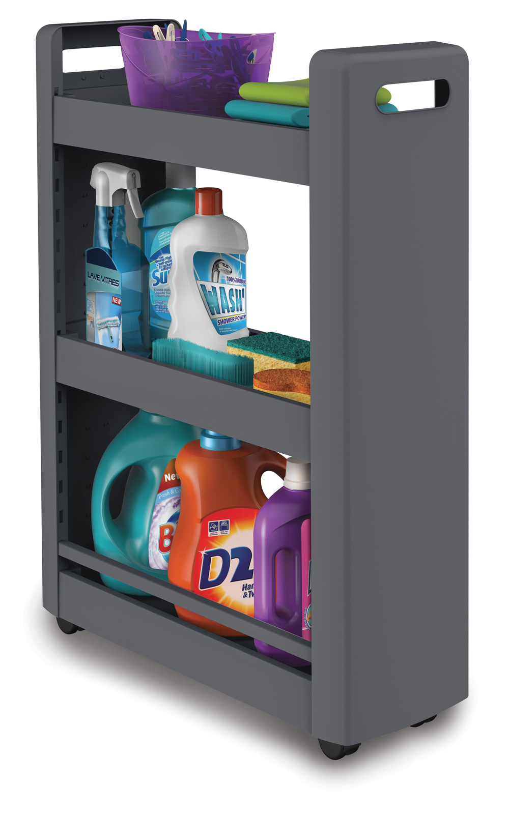 Ten trzypoziomowy antracytowy regał Mobilo pasuje do każdej przestrzeni mieszkalnej domu!