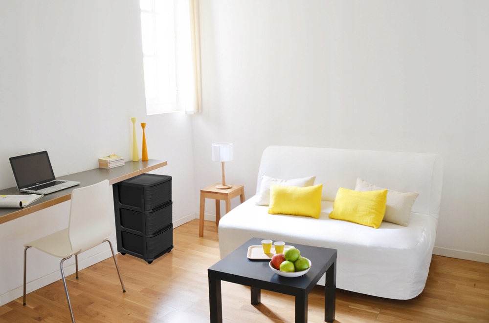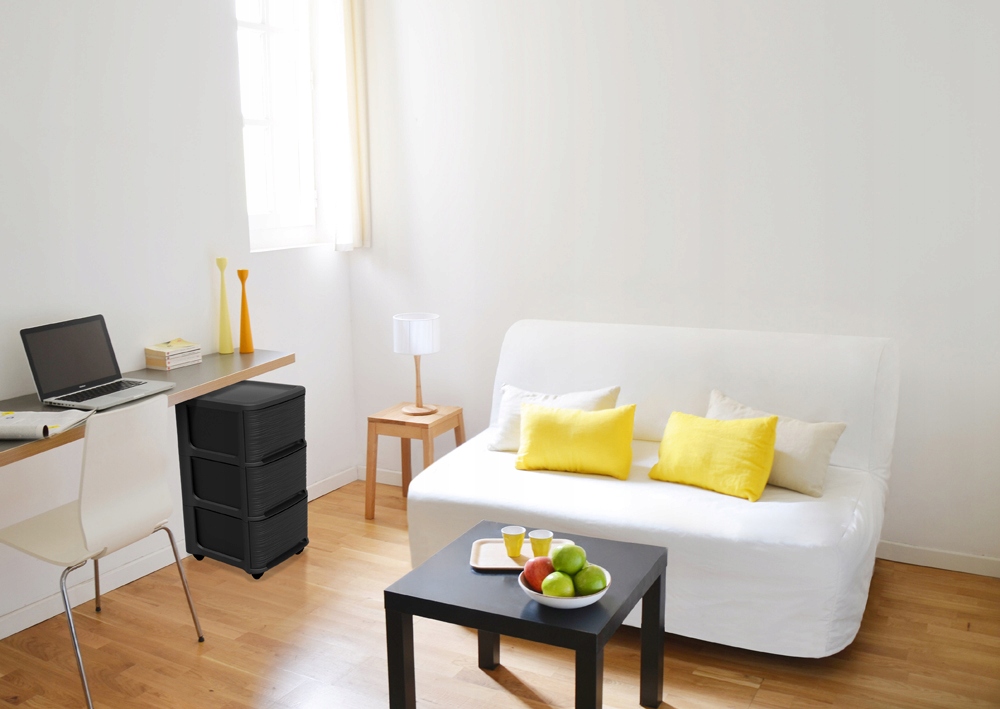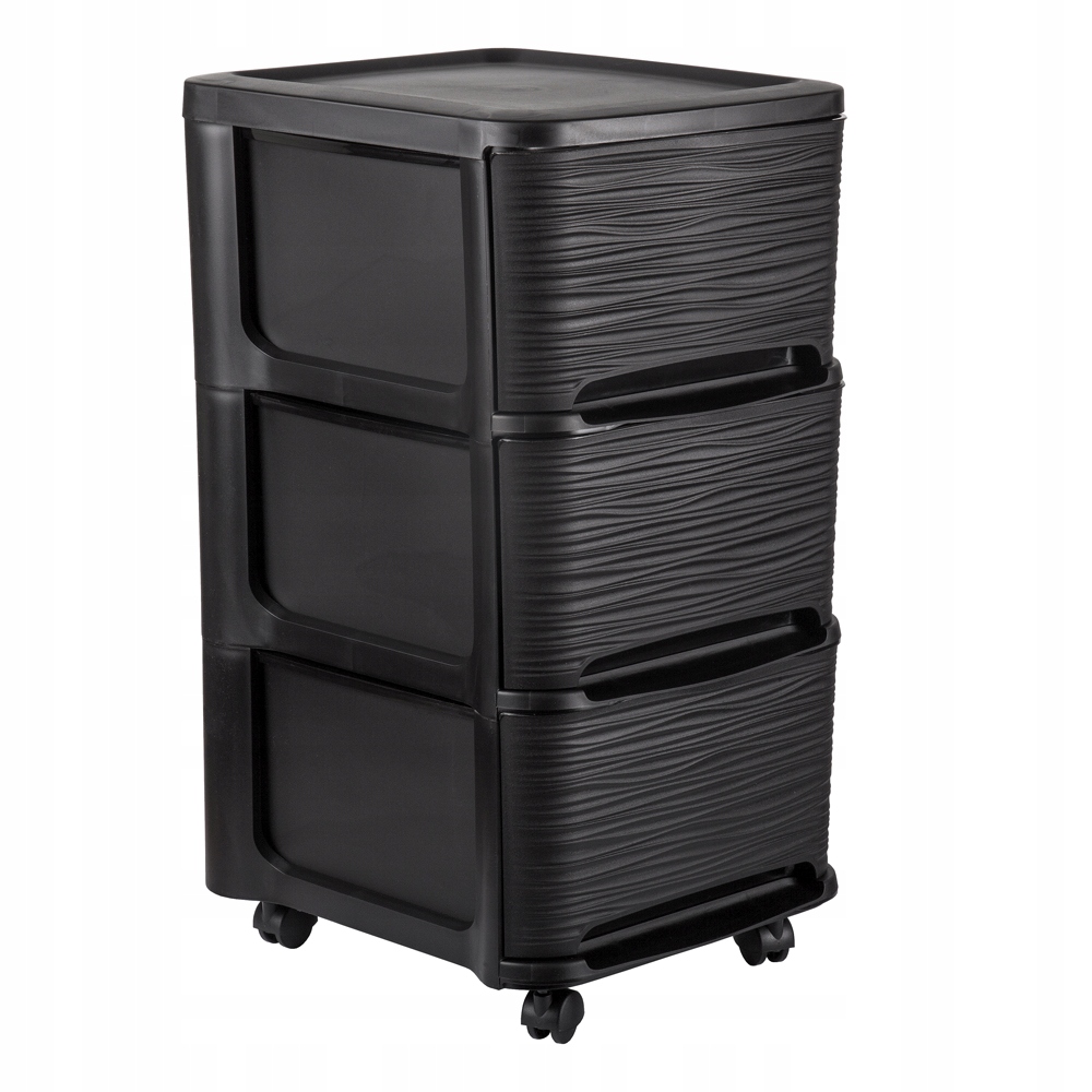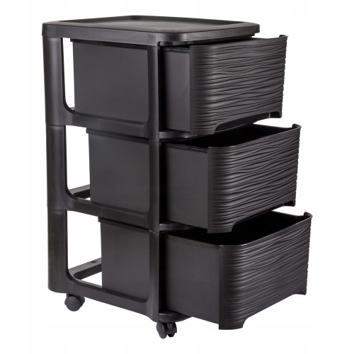 Regał organizer z 3 szufladami EDA Stone z kółkami - czarny