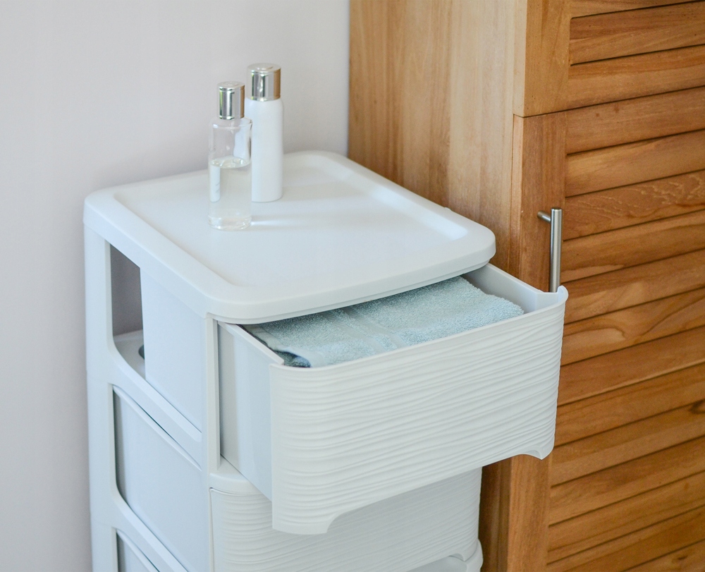 Regał organizer z 3 szufladami EDA Stone z kółkami - biały
