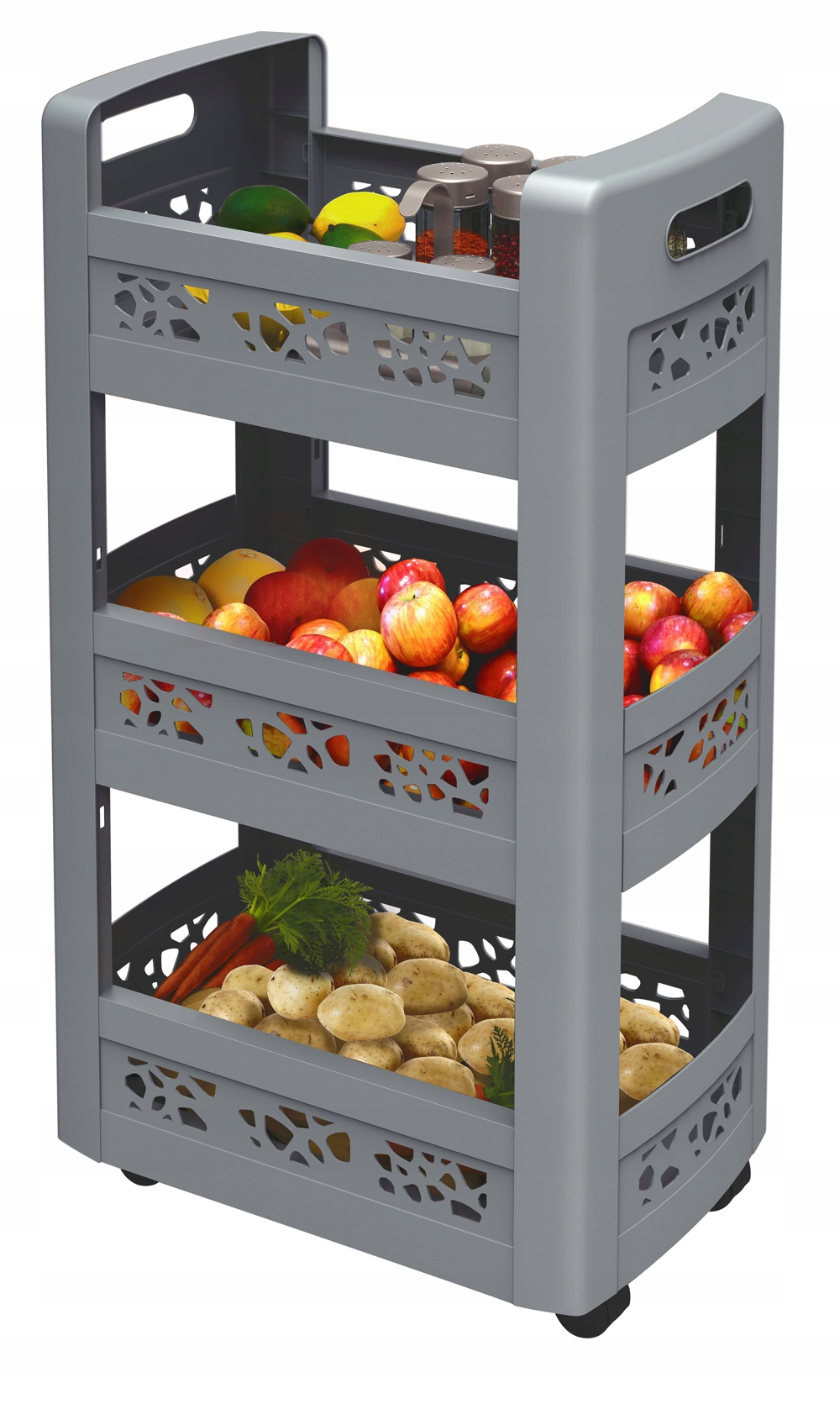 To miejsce do przechowywania jest idealne do przechowywania owoców i warzyw. Poręczny, dzięki ergonomicznym uchwytom. Ten regał został specjalnie zaprojektowany, aby ułatwić życie użytkownikowi.