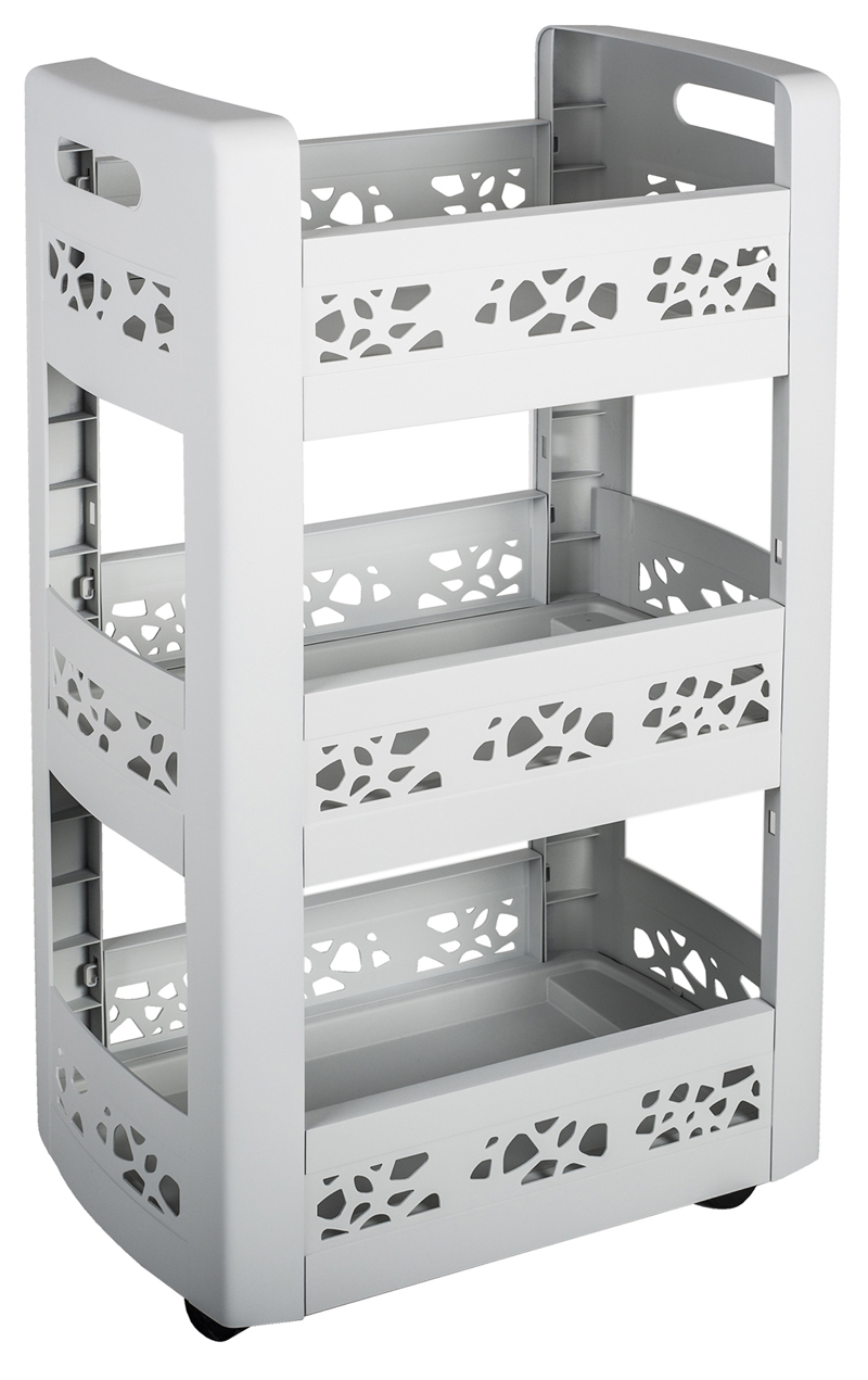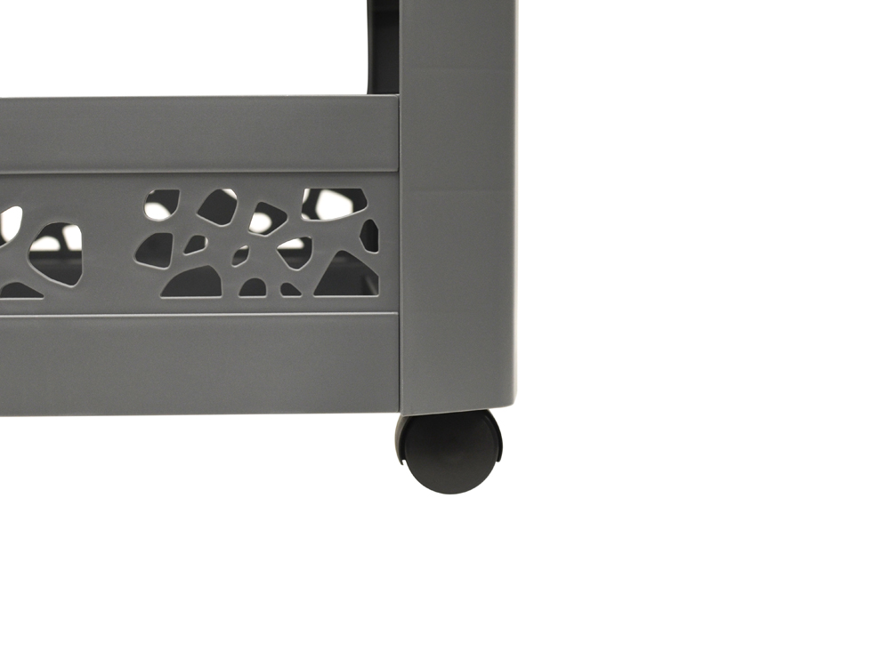 Ten trzypiętrowy regał Mobilo szary przyda się w każdej przestrzeni mieszkalnej domu! Mobilny i lekki regał można łatwo przesuwać dzięki czterem kółkom wielokierunkowym.
