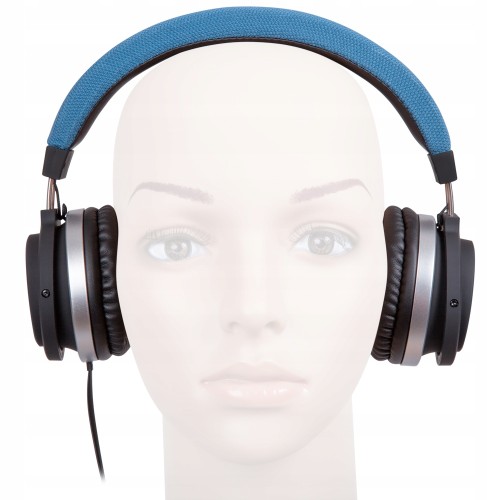 Słuchawki o wyjątkowym wyglądzie, z pałąkiem oraz nausznikami wykończonymi estetyczną tkaniną.