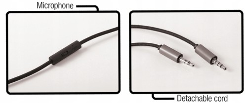Lekka oraz wytrzymała konstrukcja, duże i wygodne głośniki, odczepiany kabel 1.5m odporny na skręcanie