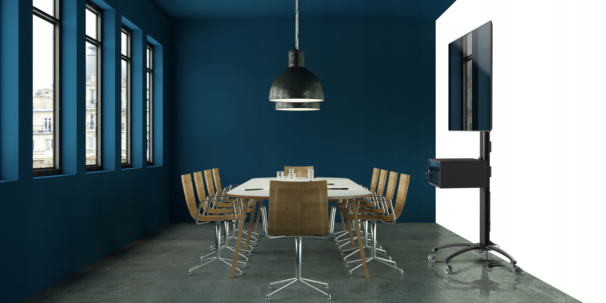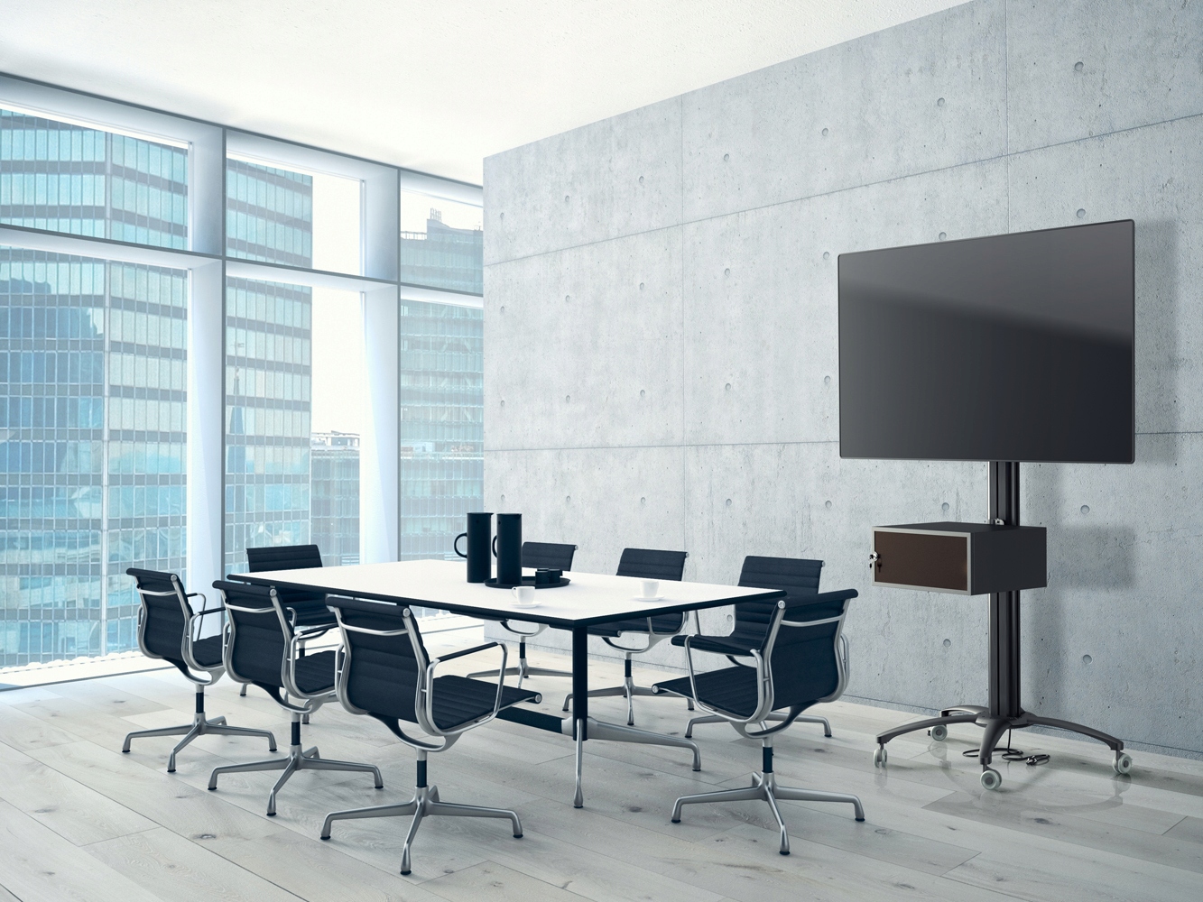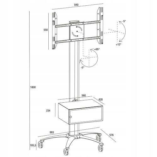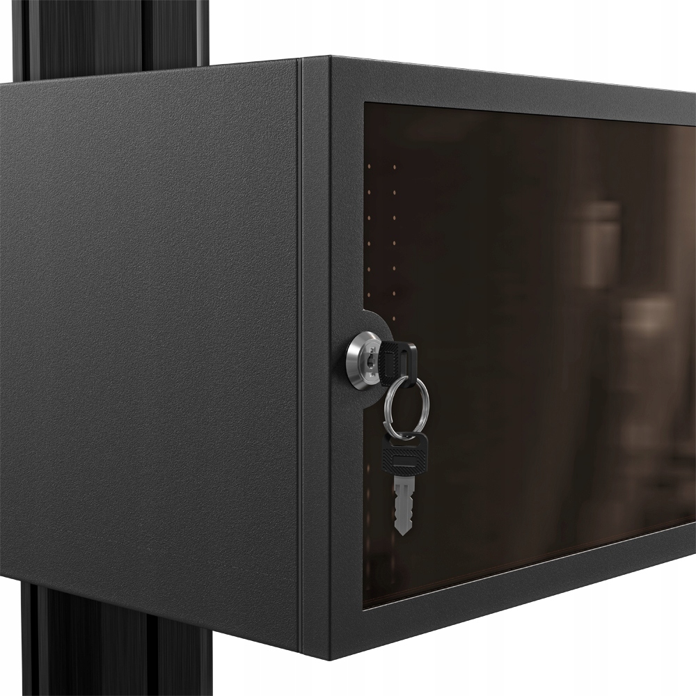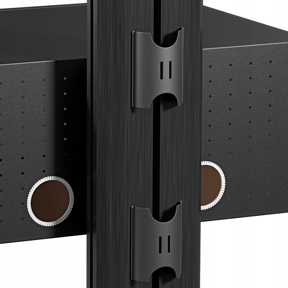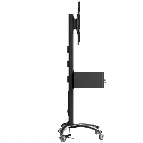 Stojak podłogowy z szafką, przeznaczony do montażu telewizora wraz z o sprzętem takim jak odtwarzacz DVD, Blu-Ray czy konsola do gier. Stojak wyposażony w 4-gniazdową listwę zasilającą.