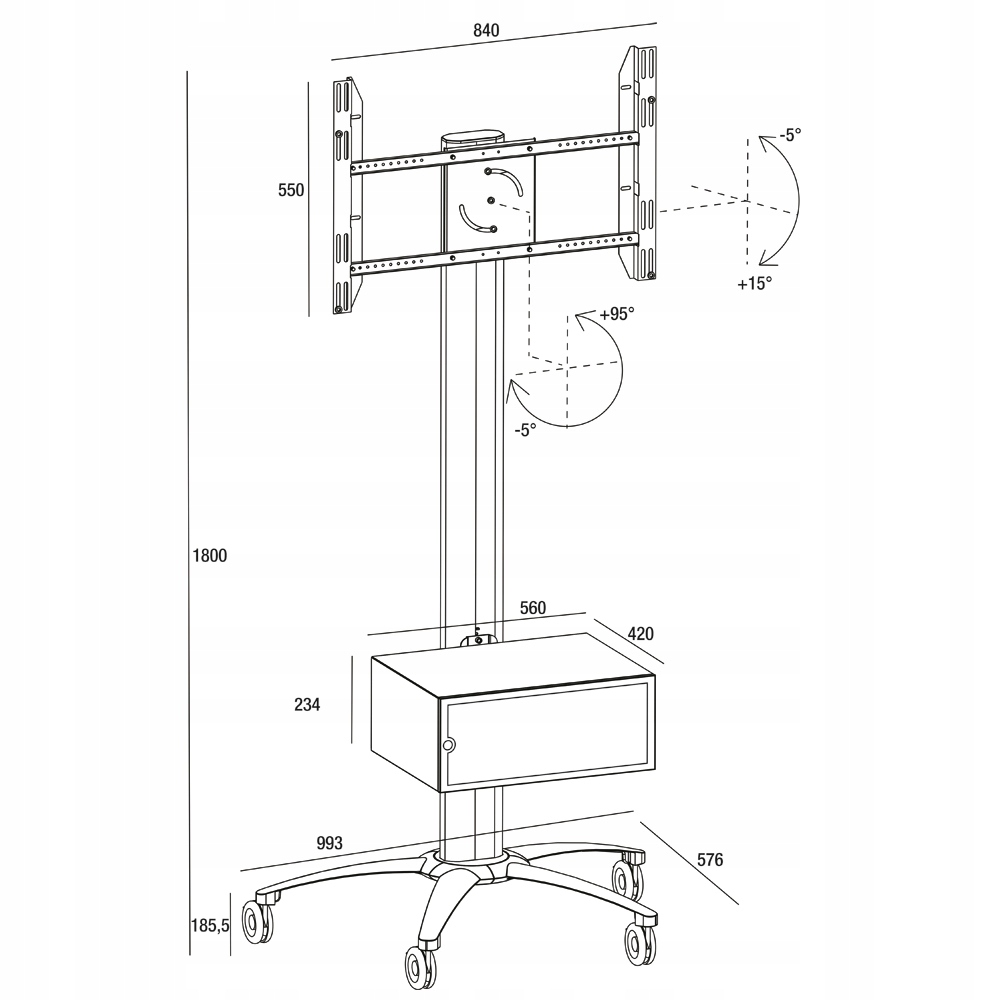Regulacja obrotu uchwytu: +5°/-95° (ekrany do 68").