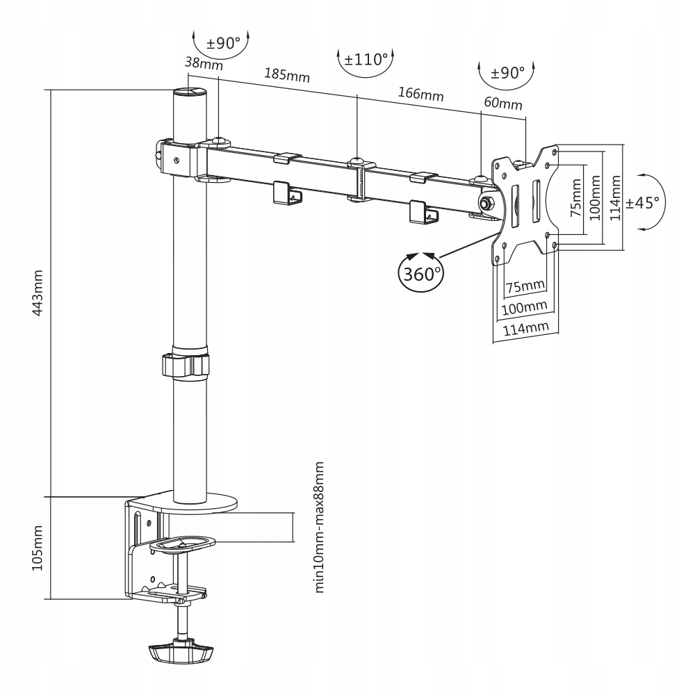 Długość ramienia uchwytu: max 45cm
