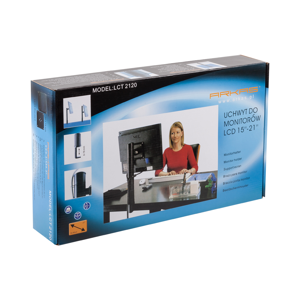 Uchwyt LCT2120 z serii przeznaczonej do płaskich ekranów o przekątnej ekranu do 21 cali. Uchwyt umożliwia regulację w pionie w zakresie do 20° oraz w poziomie 360°.